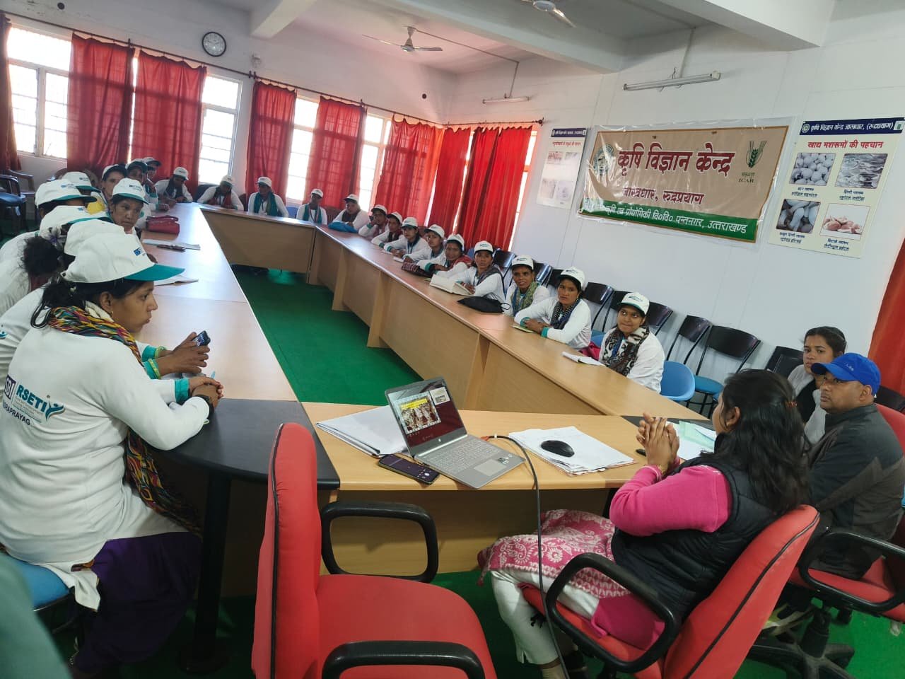 प्रशिक्षण के दौरान प्रतिभागियों को मशरूम उत्पादन की सम्पूर्ण प्रक्रिया जैसे बीज की तैयारी, माध्यम (सब्सट्रेट) तैयार करना, तापमान एवं आर्द्रता नियंत्रण, रख-रखाव, पैकिंग, भंडारण तथा विपणन से जुड़ी सभी तकनीकी जानकारियाँ दी जा रही हैं। इस कार्यक्रम में उद्यमिता विकास कार्यक्रम से संबंधित विषयों की जानकारी संस्थान के प्रशिक्षक वीरेंद्र बर्त्वाल द्वारा दी गयी। साथ ही मशरूम उत्पादन से संबंधित तकनीकी प्रशिक्षण प्रशिक्षिका मेघा रावत द्वारा प्रदान किया गया। संस्थान द्वारा प्रतिभागियों को व्यावहारिक एवं सैद्धांतिक दोनों पहलुओं से मशरूम उत्पादन की सम्पूर्ण प्रक्रिया से परिचित करवाया गया। प्रशिक्षण कार्यक्रम के दौरान कृषि विज्ञान केंद्र जाखधार का भ्रमण किया गया जहां पर डाॅ. अंशुल द्वारा मशरूम युनिट भ्रमण के दौरान भारत में पाये जाने वाले विभिन्न प्रकार के खाद्य एवं औषधीय मशरूम के बारे कई महत्वपूर्ण जानकारियां महिलाओं को दी वहीं डाॅ निवेदिता द्वारा मशरूम के मूल्य संवर्धन के बारे जानकारी दी गयी। प्रशिक्षण का मूल्यांकन राष्ट्रीय श्रेष्ठ केंद्र बेंगलुरु की मुल्यांकन टीम द्वारा किया गया जिसमें सभी प्रतिभागी सफल रहें।