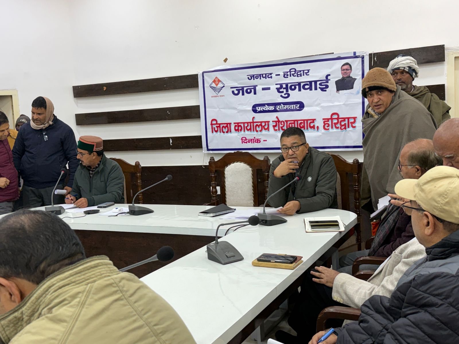 *हरिद्वार ।  जनपदवासियों की समस्याओं का त्वरित निराकरण करने के उद्देश्य से जिलाधिकारी मयूर दीक्षित के निर्देशन में अपर जिलाधिकारी (प्रशासन) पी आर चौहान एवं अपर जिलाधिकारी (वित्त एवं राजस्व) दीपेंद्र सिंह नेगी की अध्यक्षता में जिला कार्यालय सभागार में जन सुनवाई कार्यक्रम आयोजित किया गया, जिसमें विभिन्न विभागों से संबंधित 55 शिकायते/ समस्याएं दर्ज कराई गई जिसमें 28 समस्याओं का मौके पर निराकरण किया गया शेष समस्याओं को निस्तारण हेतु संबंधित विभागों को प्रेषित किया गया।
