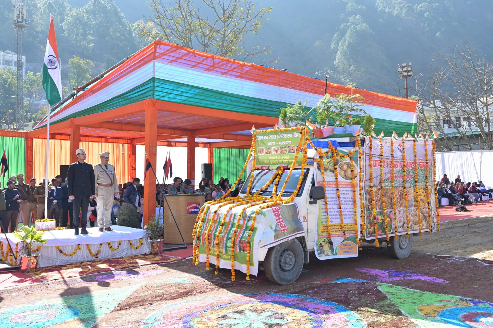परेड में पुलिस टुकड़ियों, एनसीसी कैडेट्स, एसडीआरएफ, जिला पूर्ति विभाग, जिला कृषि विभाग, जिला आपदा प्रबंधन प्राधिकरण सहित विभिन्न विभागों की आकर्षक झांकियां निकाली गईं, जिन्होंने उपस्थित जनसमूह का ध्यान आकर्षित किया।