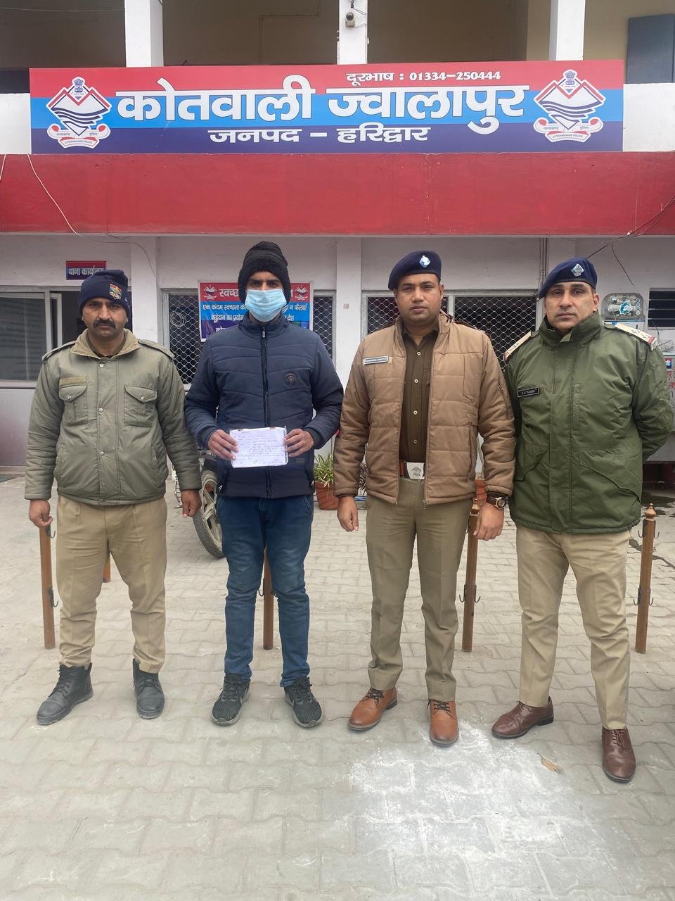 जिसपर कोतवाली ज्वालापुर की गठित टीम द्वारा दिनांक 02-01-26 को अभियुक्त आर्य गिरी को पुराना रानीपुर मोड रेलवे अण्डर पास से गिरफ्तार किया गया।