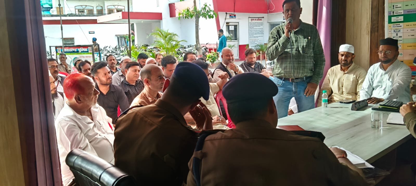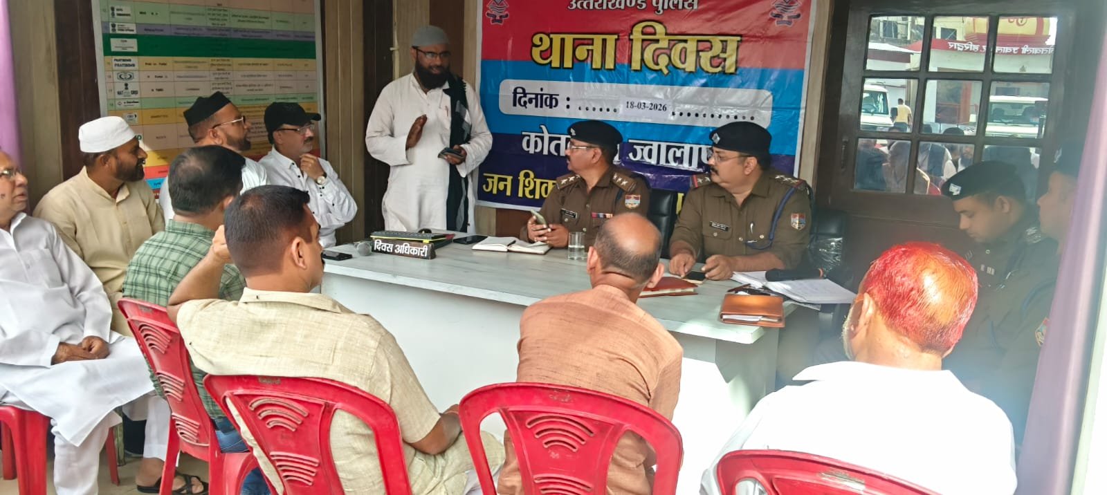 दिनांक 18/03/2026 को कोतवाली ज्वालापुर प्रांगण में सीओ ज्वालापुर संजय चौहान व प्रभारी निरीक्षक ज्वालापुर कुन्दन सिंह राणा की अध्यक्षता में आगामी ईद-उल-फितर के दृष्टिगत थाना क्षेत्र में निवासरत सभी समुदाय के सम्भ्रांत व्यक्तियों/ मौलवी/इमाम/सी.एल.जी मैम्बर्स/ पार्षदों/व्यापार मंडल के पदाधिकारी सदस्यों की मौजूदगी में थाना प्रांगण में गोष्ठी का आयोजन किया गया।