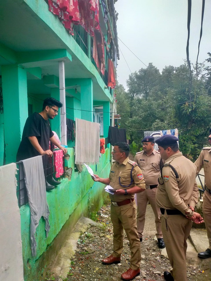 डॉ0 जगदीश चंद्रा, पुलिस अधीक्षक क्राइम नैनीताल के मार्गदर्शन तथा सुमित पाण्डे, क्षेत्राधिकारी रामनगर के पर्यवेक्षण में प्रभारी निरीक्षक मल्लीताल, थानाध्यक्ष भीमताल, बेतालघाट, मुक्तेश्वर, खन्स्यू के नेतृत्व में पुलिस की 05 अलग–अलग टीमों द्वारा थाना तल्लीताल क्षेत्र में जू रोड, सीमेंट हाउस, बिरला रोड, रैम्जे रोड, स्टैनले कंपाउंड, मेबिला कंपाउंड, माल रोड, तल्लीताल मेन बाजार, पिछली बाजार, हल्द्वानी रोड, कैंट एरिया, फॉरेस्ट कंपाउंड, राजभवन नियर पुलिस लाइन, फासी गधेरा से डीसीबी जाने की गली, कृष्णापुर, गुफा महादेव रोडवेज हरी नगर, बूचड़खाना तल्लीताल आदि जगहों पर घर, दुकान, होटल आदि स्थानों में बाहरी व्यक्तियों का सत्यापन अभियान चलाया गया।