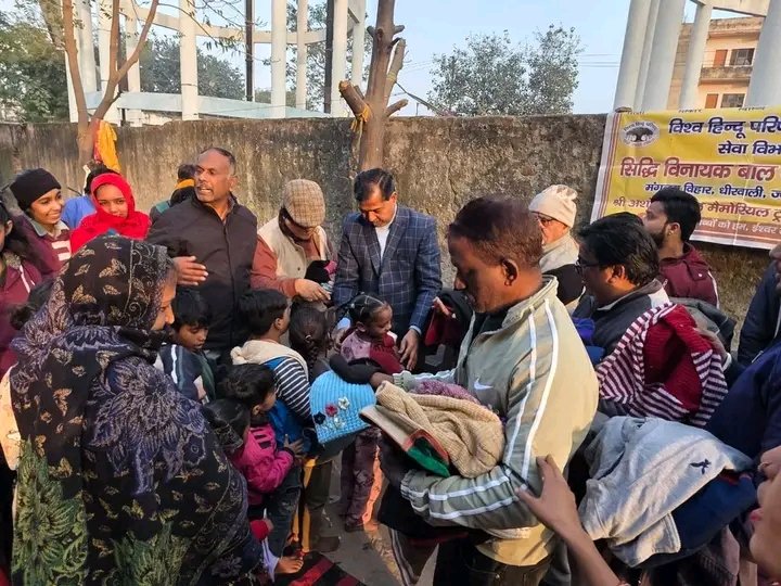 जिसके तहत .प्रत्येक वर्ष की भांति इस वर्ष भी शहर में जारी शीत लहर एवं भयंकर सर्दी के बीच गरीब असहाय निर्धन वृद्ध पुरुष महिलाओं एवं बच्चों को ठंड के प्रकोप से बचाव हेतु उन्हे गर्म कपड़ों का वितरण कर यह जन सहयोगी कार्य किया गया इस अवसर पर .वस्त्र वितरण कार्य में समाजसेवी शशिकांत गर्ग का विशेष सहयोग रहा
