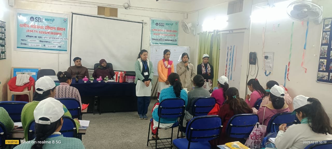 स्टेट बैंक ग्रामीण स्वरोजगार प्रशिक्षण संस्थान (आर-सेटी) रुद्रप्रयाग द्वारा जिले की महिलाओं को स्वावलंबी और उद्यमी बनाने के उद्देश्य से 35 दिवसीय निःशुल्क ब्यूटी पार्लर एवं उद्यमिता विकास प्रशिक्षण कार्यक्रम सफलतापूर्वक चलाया जा रहा है। यह प्रशिक्षण 11 नवंबर 2025 से शुरू हुआ था और 15 दिसंबर 2025 तक चलेगा।