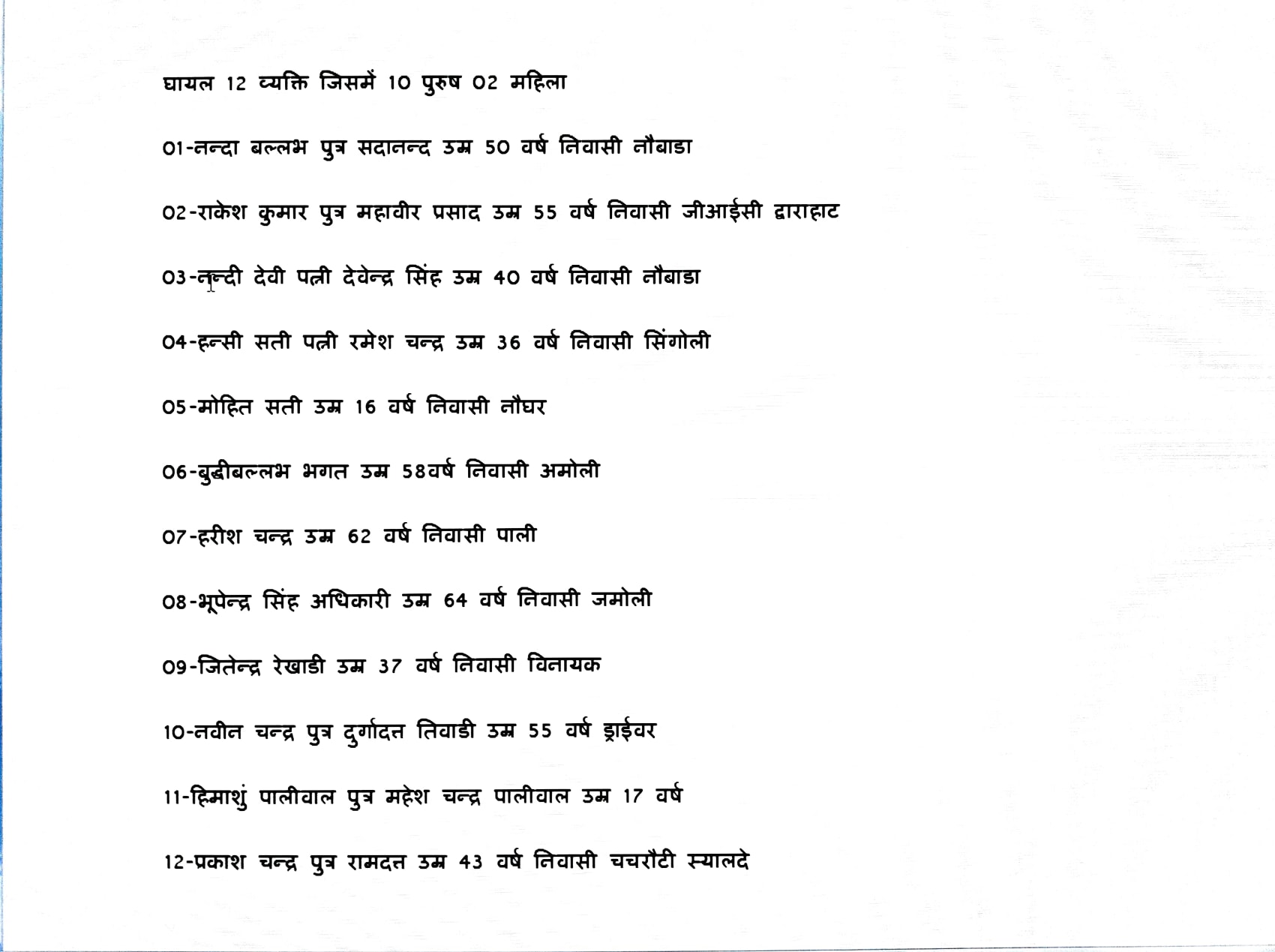 बस में कुल 19 लोग सवार थे,Uk07 PA 4025 नम्बर की बस सुबह लगभग दस बजे के आसपास विनायक मोटर मार्ग पर दुर्घटना ग्रस्त हो गई।