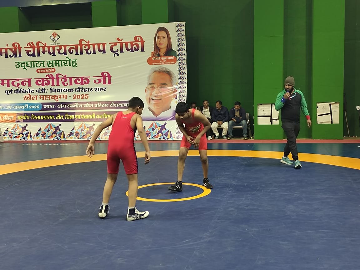 हरिद्वार।  जिला युवा कल्याण एवं प्रांतीय रक्षक दल अधिकारी प्रमोद चंद्र पाण्डे ने अवगत कराया है कि आज 30 जनवरी 2026 को जनपद हरिद्वार में मुख्यमंत्री चैम्पियनशिप ट्राॅफी 2025 राज्य स्तरीय प्रतियोगिता का समापन किया गया, जिसमें कुश्ती की 42 वेट कैटेगरी में प्रतियोगिता करायी गयी, जिसमें जनपद हरिद्वार के प्रतिभागियों द्वारा 30 गोल्ड, 02 सिल्वर एवं 06 ब्राउन्स मेडल प्राप्त किये एवं योगासन प्रतिभागियों ने 18 गोल्ड एवं 02 सिल्वर मेडल प्राप्त कर जनपद हरिद्वार का गौरव बढ़ाया।