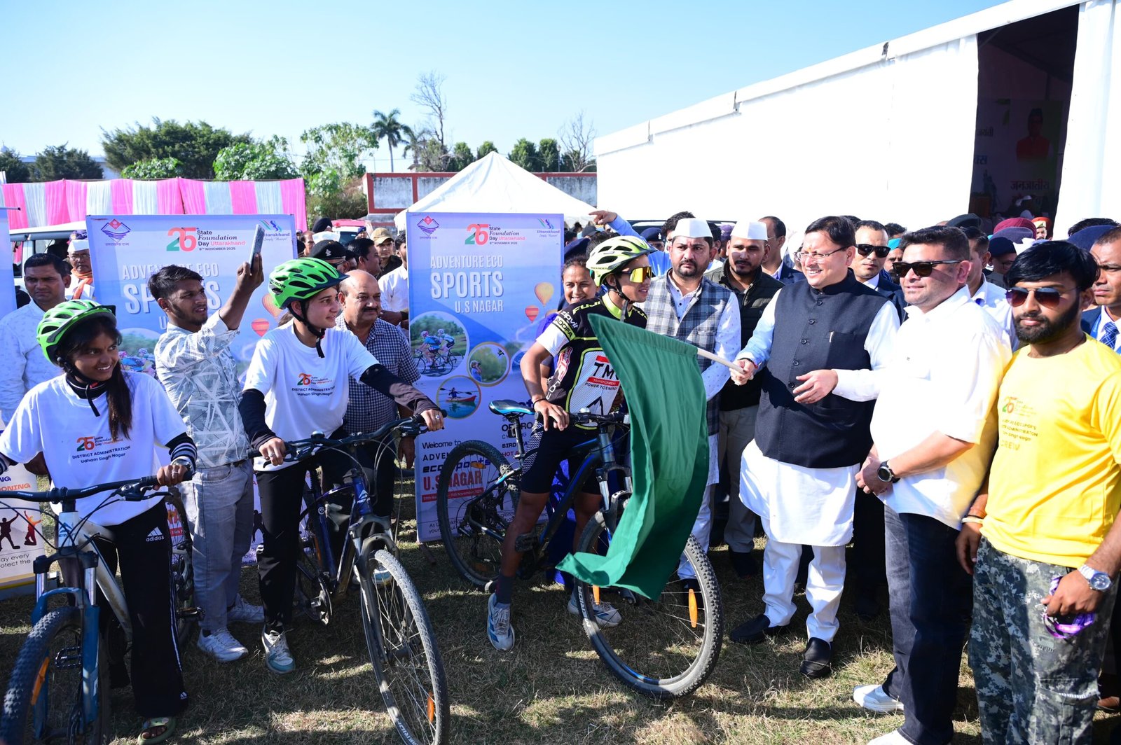 मुख्यमंत्री श्री पुष्कर सिंह धामी ने नानकमत्ता में भगवान बिरसा मुण्डा की 150 वीं जयंती के उपलक्ष्य में आयोजित जनजाति गौरव दिवस समारोह का दीप प्रज्ज्वलित कर शुभारम्भ किया। इस अवसर पर उन्होंने 9.68 करोड़ की लागत के महाराणा प्रताप राजकीय महाविद्यालय नानकमत्ता का शिलान्यास व नगर निकाय श्री नानकमत्ता के 1 करोड़ की लागत से निर्मित भवन का लोकार्पण किया।
