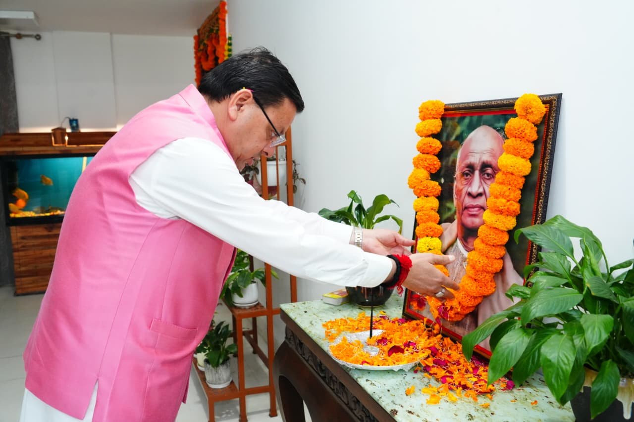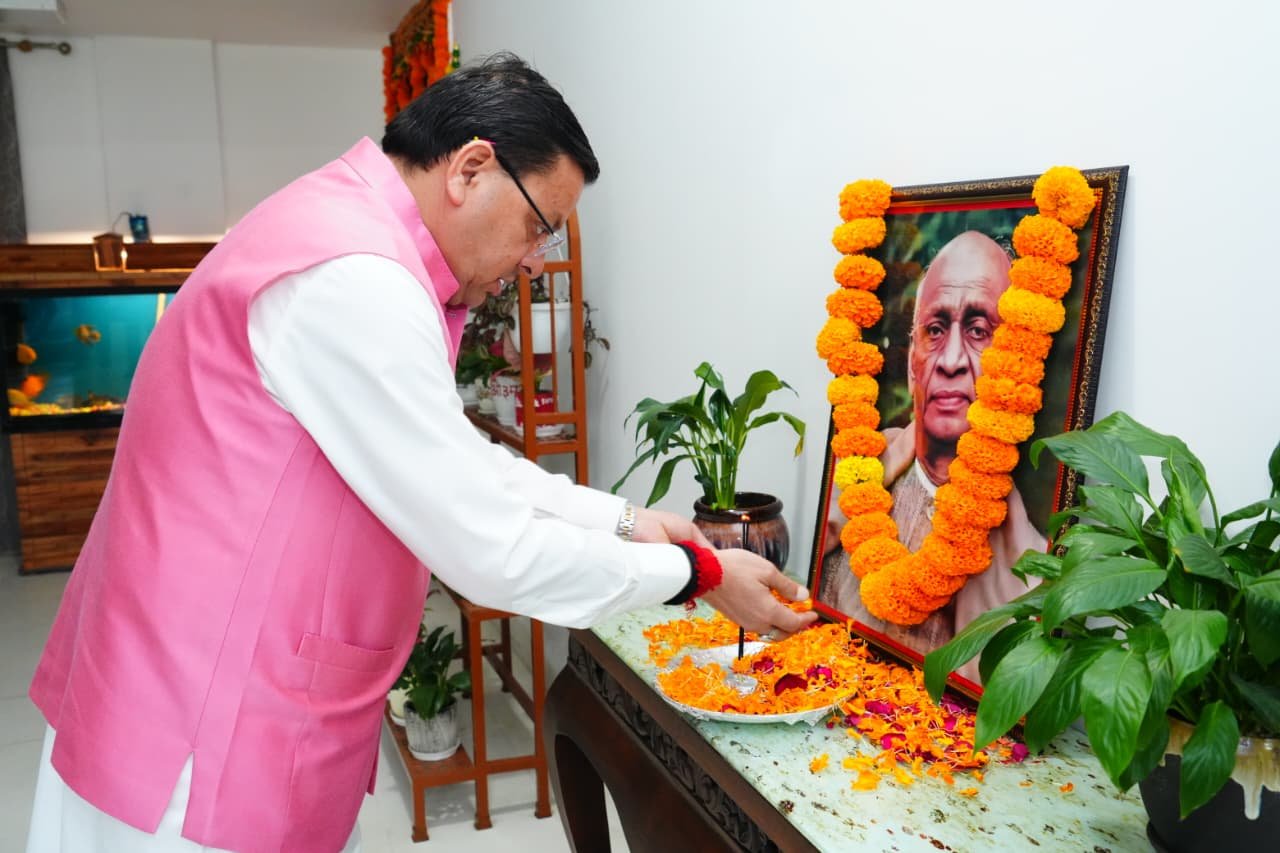 मुख्यमंत्री श्री पुष्कर सिंह धामी ने शुक्रवार को लौह पुरूष सरदार बल्लभ भाई पटेल जी की जयन्ती के अवसर पर मुख्यमंत्री आवास में उनके चित्र पर श्रद्धा सुमन अर्पित कर श्रद्धांजलि दी ।
