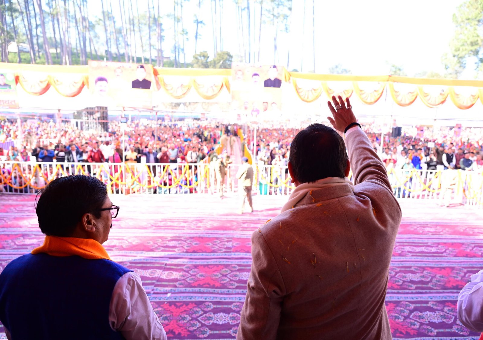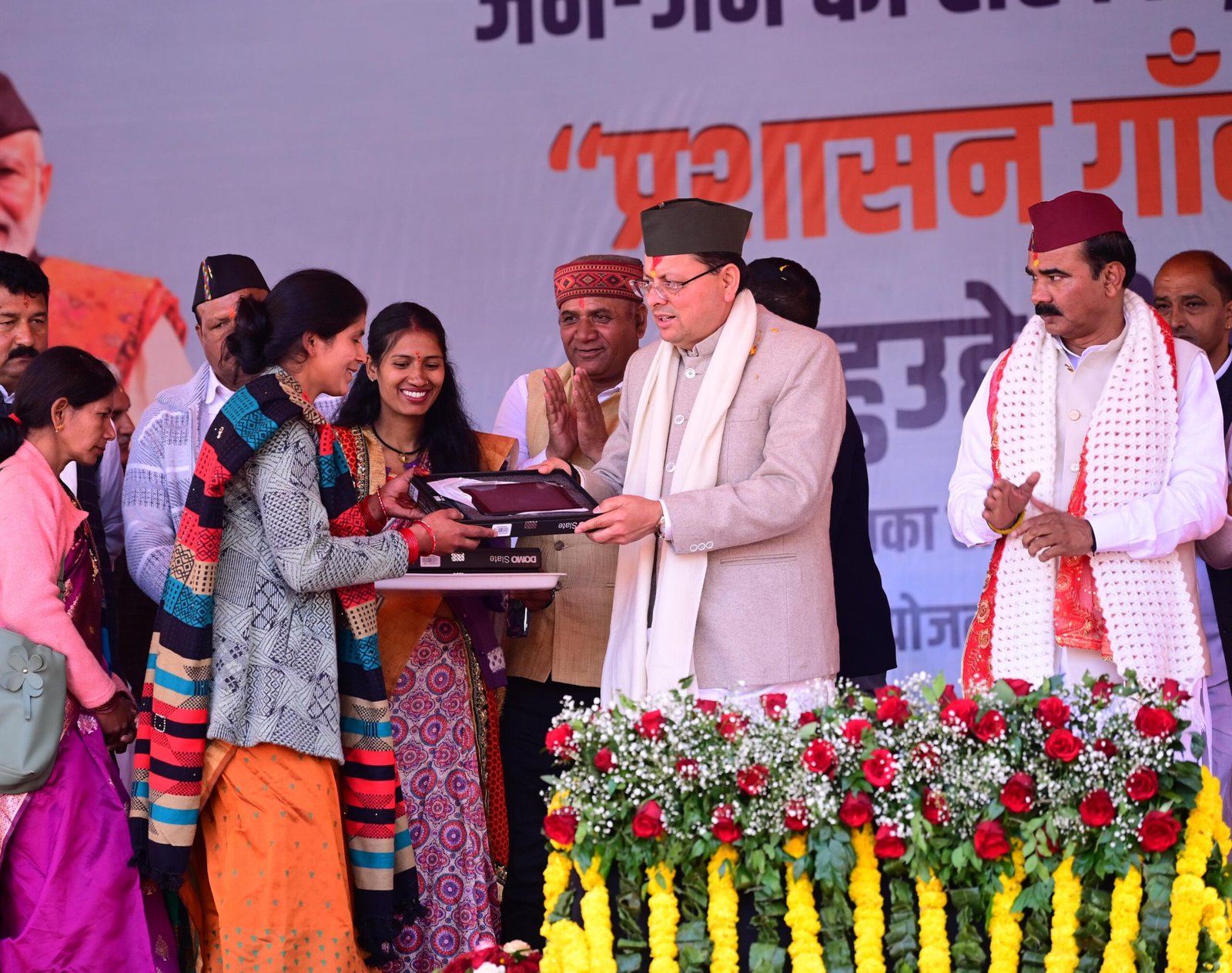 मुख्यमंत्री श्री पुष्कर सिंह धामी ने “जन-जन की सरकार, जन-जन के द्वार” अभियान के तहत सोमवार को अल्मोड़ा जिले के ताड़ीखेत में आयोजित बहुद्देश्यीय शिविर में प्रतिभाग किया। इस अवसर पर मुख्यमंत्री ने क्षेत्रीय जनता से संवाद करने के साथ ही विभिन्न विभागों द्वारा लगाए गए स्टॉल का निरीक्षण भी किया। इस शिविर में पात्र लोगों को सरकार की अनेक जनकल्याणकारी योजनाओं से लाभान्वित करने के साथ ही जनसमस्याओं का मौके पर ही निस्तारण किया गया।