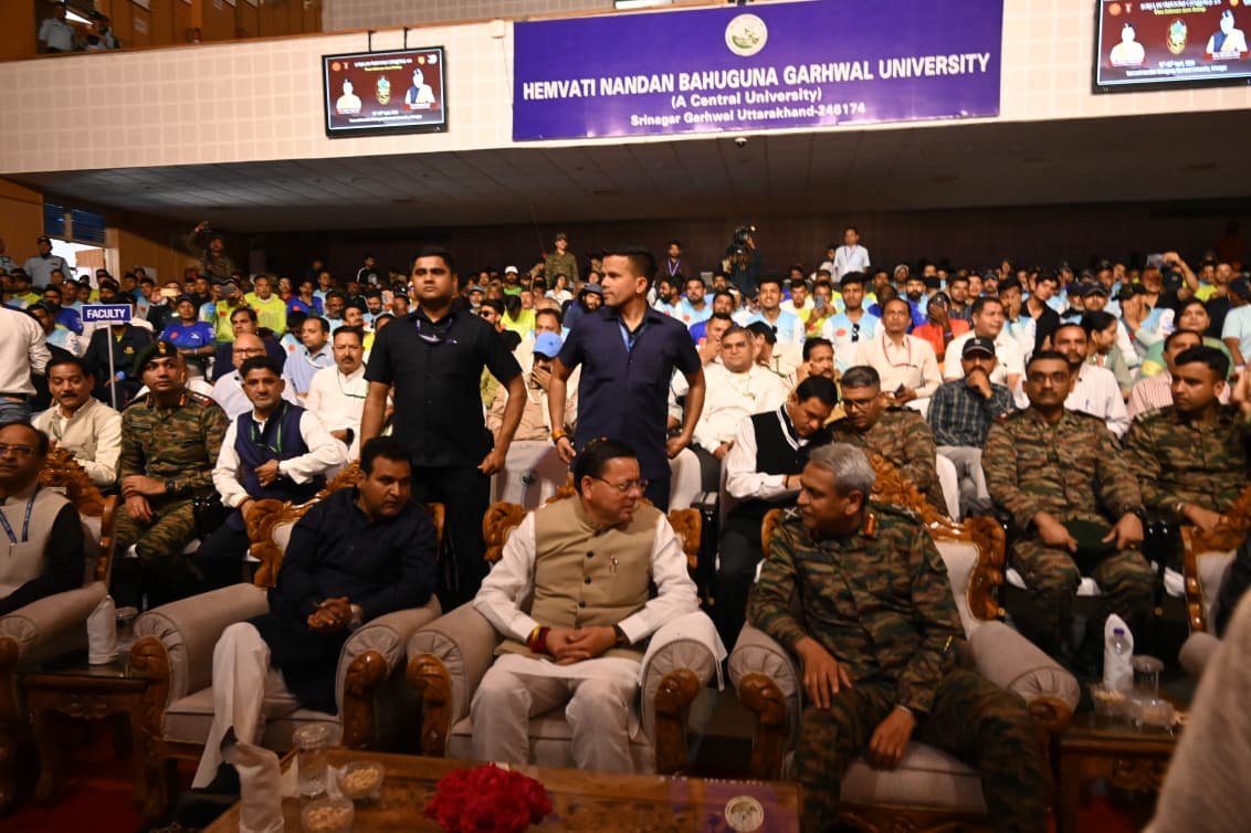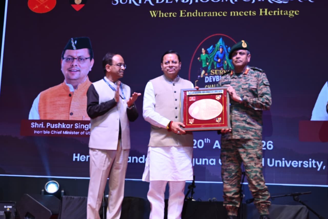 भारतीय सेना और उत्तराखंड पर्यटन के संयुक्त तत्वावधान में आयोजित सूर्य देवभूमि चैलेंज के द्वितीय संस्करण का गढ़वाल विश्वविद्यालय के चौरास परिसर में समापन समारोह के अवसर पर बतौर मुख्य अतिथि मुख्यमंत्री श्री पुष्कर सिंह धामी ने कार्यक्रम में प्रतिभाग करते हुए समारोह में उपस्थित सभी सैन्य अधिकारियों, वीर जवानों तथा देशभर से आए प्रतिभागियों एवं यूवा साथियों का हार्दिक स्वागत एवं अभिनंदन किया।