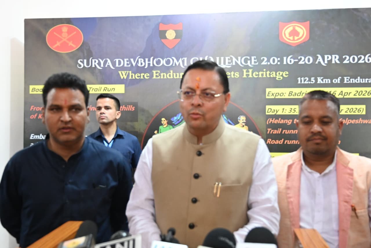 मुख्यमंत्री ने सूर्य देवभूमि चैलेंज के इस दूसरे संस्करण में भारतीय सेना के100 जांबाज़ जवानों के साथ- साथ देशभर से आए लगभग 200 साहसिक ट्रैकर्स जिन्होंने इस हाईटियूड मैराथन में भाग लेने वाले जिन्हने केदार-बद्री ट्रेल में हेलंग से कलगोट और कलगोट से मंडल होते हुए उखीमठ तक 113 किलोमीटर के अत्यंतदुर्गम और चुनौतीपूर्ण पर्वतीय मागों को पार करने में सफलता प्राप्त की है। उन सभी प्रतिभागियों को हार्दिक बधाई दी, जिन्होंने इस चुनौतीपूर्ण अभियान में भाग लेकर अपने साहस, धैर्य और दृढ़ संकल्प का उत्कृष्ट परिचय दिया है।