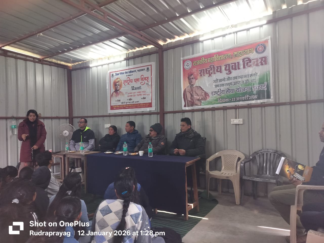 राष्ट्रीय युवा दिवस के अवसर पर राष्ट्रीय सेवा योजना (एनएसएस) इकाई, राजकीय महाविद्यालय रुद्रप्रयाग द्वारा महाविद्यालय परिसर में स्वच्छता जागरूकता अभियान एवं गोष्ठी का आयोजन किया गया। कार्यक्रम का शुभारंभ महाविद्यालय के प्राचार्य डॉ. आशुतोष त्रिपाठी द्वारा किया गया।