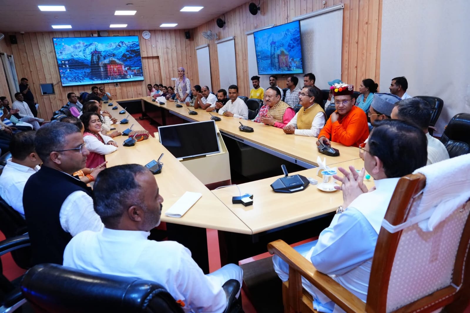 मुख्यमंत्री श्री पुष्कर सिंह धामी से सोमवार को मुख्यमंत्री आवास में गंगोत्री क्षेत्र से विधायक श्री सुरेश सिंह चौहान तथा पुरोला क्षेत्र से विधायक श्री दुर्गेश्वर लाल के नेतृत्व में उत्तरकाशी जिले से त्रिस्तरीय पंचायत चुनावों में जीत दर्ज करने वाले नवनिर्वाचित जिला पंचायत सदस्यों ने भेंट की मुख्यमंत्री श्री पुष्कर सिंह धामी ने सभी विजयी जनप्रतिनिधियों को बधाई एवं जनसेवा के नवीन दायित्वों के सफल निर्वहन हेतु शुभकामनाएं दी।