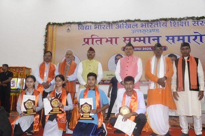 मुख्यमंत्री पुष्कर सिंह धामी ने रविवार को नैनीताल के पार्वती प्रेमा जगाती सरस्वती विहार में विद्या भारती अखिल भारतीय शिक्षा संस्थान उत्तराखंड द्वारा आयोजित प्रतिभा सम्मान समारोह में उत्तराखंड बोर्ड की परीक्षा में विद्या भारती विद्यालयों के उत्कृष्ट स्थान प्राप्त अभ्यर्थियों को सम्मानित किया।