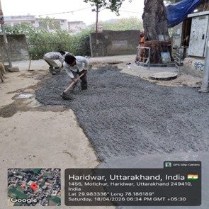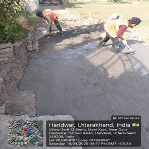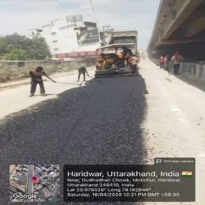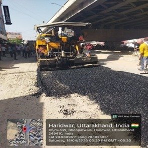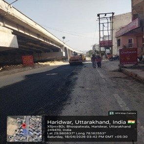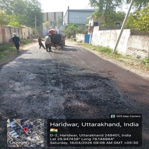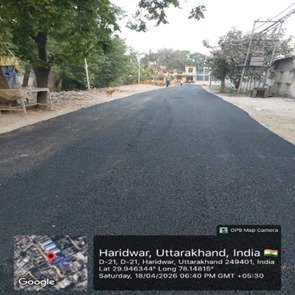 परियोजना प्रबंधक निर्माण एवं अनुरक्षण इकाई गंगा उत्तराखंड पेयजल निगम मिनाक्षी मित्तल ने अवगत कराया है कि जिलाधिकारी के निर्देशों के अनुपालन में केएफडब्लयू वित्त पोषित हरिद्वार जलोत्सारण योजना पैकेज 01 एवं पैकेज 02 के अंतर्गत कराए जा रहे सड़क पुनर्निर्माण संबंधी कार्य जिसके तहत 18 अप्रैल को किए गए निर्माण कार्यों का विवरण निम्नवत है जिसमें- पैकेज 01 में बिटुमिनस रोड़ वर्क (पुराना आरटीओ चौक से दूधाधारी चौक) तक 318 मीटर, बिटुमिनस रोड़ वर्क (इंडस्ट्रीयल एरिया) 588 मीटर ,पीपल वाली गली सीसी रोड 44 मीटर , अमृत गंगा अपार्टमेंट (सीसी रोड) कार्य 40 मीटर पूर्ण कर लिया गया है तथा कुल 990 मीटर कार्य पूर्ण कर लिया गया है। तथा पैकेज 02 के अंतर्गत  द्वारका विहार पावर ब्लॉक 22 मीटर, द्धारका विहार (सीसी रोड) 04 मीटर ,गणपति विहार सीसी रोड 37 मीटर, गणपतिधाम फेज 3 (सीसी रोड) 40 मीटर, गणपतिधाम फेस 3 पावर ब्लॉक 10 मीटर कार्य पूर्ण करते हुए कुल 113 मीटर निर्माण कार्य पूर्ण कर लिया गया है ।