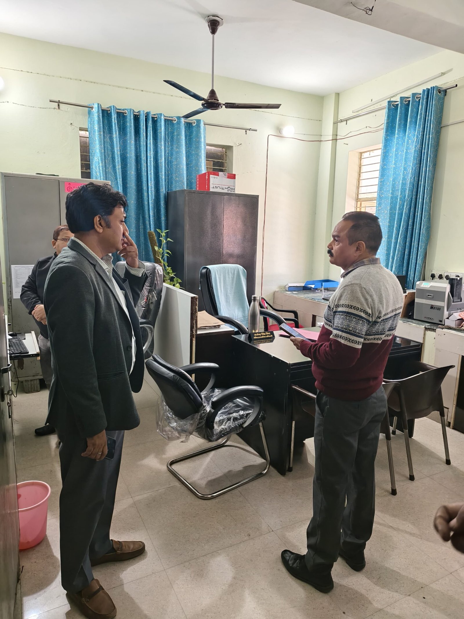 उन्होंने निरीक्षण के दौरान बायोमेट्रिक उपस्थिति प्रणाली,कैश रजिस्टर,सेवा का अधिकार रजिस्टर,तथा सी.एल.रजिस्टर का परीक्षण करते हुए सभी कर्मचारियों को समय पर उपस्थिति सुनिश्चित करने हेतु निर्देशित किया गया।