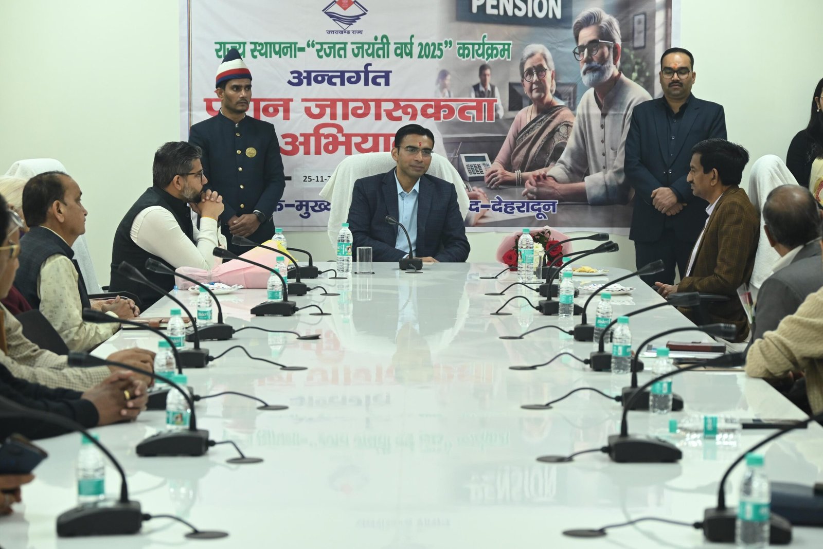 *देहरादून ।जिलाधिकारी सविन बसंल ने राज्य स्थापना की रजत जयंती पर 25 नवंबर,2025 को मुख्य कोषागार देहरादून में पेंशन जागरूकता एवं निःशुल्क चिकित्सा शिविर का शुभारंभ करते हुए राज्य आंदोलनकारी पेंशनरों को सम्मानित किया। इस मौके पर जिलाधिकारी ने मुख्य कोषागार में पेंशनरों की सुविधा के लिए जिला प्लान से 25 लाख लागत में नवनिर्मित ‘‘आरोहण’’ सभागार का लोकापर्ण भी किया और मुख्य कोषागार कार्यालय को 10 नए कम्प्यूटर देने की स्वीकृति भी प्रदान की।