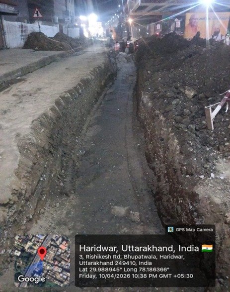 परियोजना प्रबंधक निर्माण एवं अनुरक्षण इकाई गंगा उत्तराखंड पेयजल निगम मिनाक्षी मित्तल ने अवगत कराया है कि जिलाधिकारी के निर्देशों के अनुपालन में केएफडब्लयू वित्त पोषित हरिद्वार जलोत्सारण योजना पैकेज 01 एवं पैकेज 02 के अंतर्गत कराए जा रहे सड़क पुनर्निर्माण संबंधी कार्य जिसके तहत 09 अप्रैल एवं 10 अप्रैल तक किए गए निर्माण कार्यों का विवरण निम्नवत है जिसमें- पैकेज 01 में प्रेम विहार कॉलोनी सीसी रोड निर्माण कार्य 31 मीटर, मुखिया गली सीसी रोड निर्माण कार्य 8.5 मीटर, साईं गली सीसी रोड 32 मीटर,रानी गली सिसी रोड 41 मीटर, शिवमूर्ति चौक (बी.टी रोड बाय पी.डब्लू.डी) निर्माण कार्य 180 मीटर तथा कुल 292.50 मीटर निर्माण कार्य पूर्ण कर लिया गया है। तथा पैकेज 02 के अंतर्गत शिवानीपुरम में सीसी रोड निर्माण कार्य 6 मीटर, द्वारका विहार(पेवर ब्लॉक) 9 मीटर, राज विहार फेस 2 पेवर ब्लॉक 26 मीटर, राजा गार्डन सीसी रोड 67 मीटर,मोहन एनक्लेव सीसी रोड 26 मीटर कार्य पूर्ण करते हुए कुल 134 मीटर निर्माण कार्य पूर्ण कर लिया गया है ।