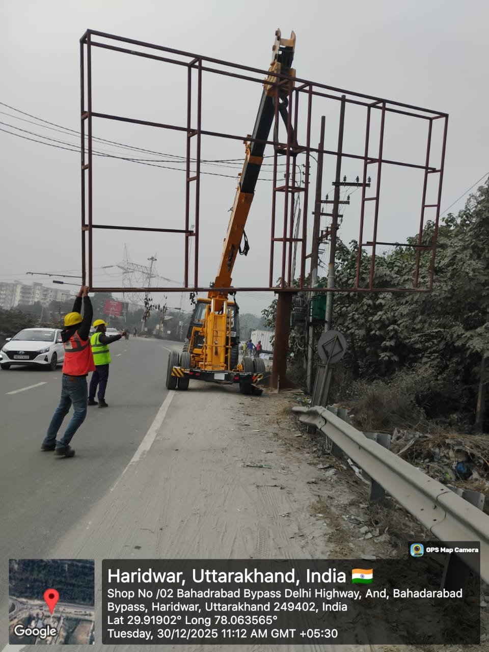 अधिशासी अभियंता एनएचएआई अतुल शर्मा ने अवगत कराया है कि जिलाधिकारी के निर्देशों के अनुपालन में राष्ट्रीय राजमार्ग पर बिना अनुमति के लगाए गए होर्डिंग एवं यूनीपोल को आज राष्ट्रीय राजमार्ग संख्या 334 क्षेत्रांतर्गत जेसीबी मशीन के माध्यम से 12 यूनीपोल तथा 10 बड़े होर्डिंग को राष्ट्रीय राजमार्ग प्राधिकरण की टीम द्वारा हटाया गया इसके साथ ही सड़क किनारे फल,सब्जी एवं कपड़े बचने वाली को भी लगातार हटाया जा रहा है।