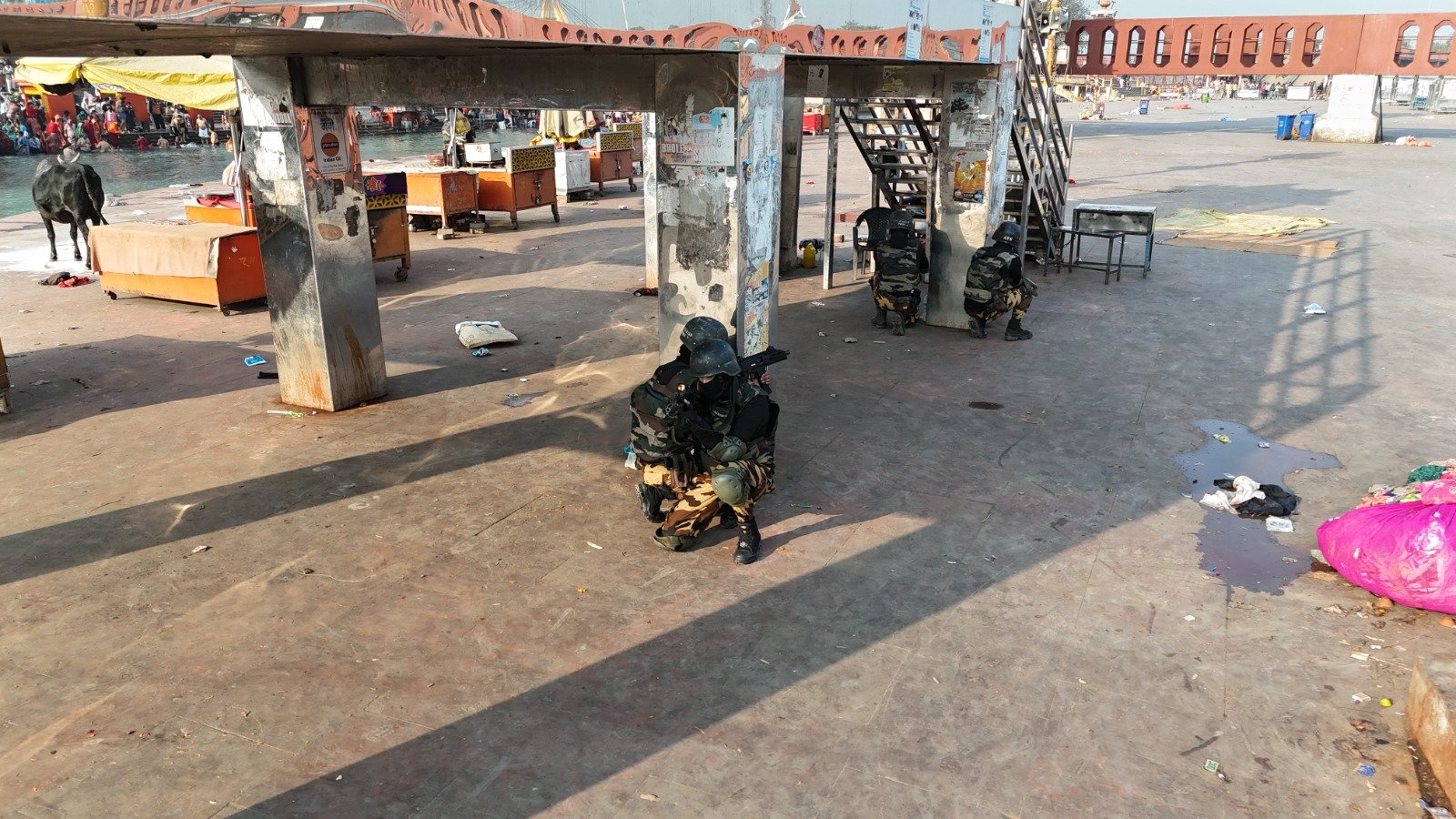 इंसीडेंट कमांडर एसपी क्राइम जितेंद्र मेहरा ने बताया- दोपहर करीब 02 बजे पुलिस कंट्रोल रुम को सूचना मिली कि हरकी पौड़ी मालवीय घाट पर शंकराचार्य जी के मूर्ति के पास संदिग्ध बैग रखा हुआ है। हरकी पौड़ी इंचार्ज ने तत्काल पुलिस कंट्रोल रुम को एवं एसएसआई नगर कोतवाली हरिद्वार को तथा पुलिस आलाधिकारियों को मालवीय घाट पर संदिग्ध बैग रखे होना बताया।जिसपर बीडीएस की टीम ने मौके पर पहुंचकर नियंत्रण में लिया।दूसरे मॉकड्रिल में मालवीय घाट स्थित घंटाघर में अपराणकर्ता ने कुछ लोगो को बाधक बनाया था ,एटीएस की टीम द्वारा तुरंत मौके पर पहुंचकर कार्यवाही की जिसमें अपराणकर्ता को न्यूट्रलाइज किया तथा उनके कब्जे से लोगों को मुक्त कराया। तीसरी मॉकड्रिल अभ्यास में सुभाष घाट पर किसी दुकान पर आग लगने की सूचना मिली थी ,जिसपर दमकल की टाइम द्वार तत्काल आग पर काबू पाया गया।