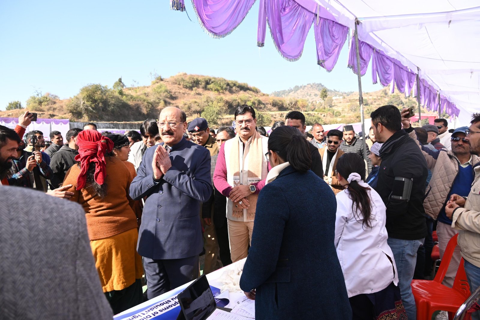 शिविर में राज्यमंत्री कुलदीप कुमार, उपाध्यक्ष अमर सिंह चौहान, मंडल अध्यक्ष प्रवीन चौहान, युवा मोर्चा अध्यक्ष विनय नौटियाल, जिप सदस्य दीवान सिंह व मधु चौहान, ब्लाक प्रमुख सावत्री चौहान, ज्येष्ठ प्रमुख मीना राठौर, कनिष्ठ उप प्रमुख प्रियंका चौहान, ग्राम प्रधान दयाराम शर्मा, क्रांति तोमर सहित जिलाधिकारी सविन बंसल, मुख्य विकास अधिकारी अभिनव शाह, एसडीएम प्रेम लाल, परियोजना निदेशक विक्रम सिंह, सीएमओ डॉ एम के शर्मा, डीडीओ सुनील कुमार, सी ए ओ देवेंद्र सिंह, डीपीओ मीना विष्ट, जितेन्द्र कुमार, बीडीओ जगत सिंह एवं अन्य विभागीय अधिकारी, क्षेत्रीय जनप्रतिनिधि, गणमान्य नागरिक और बडी संख्या में ग्रामीण मौजूद रहे।