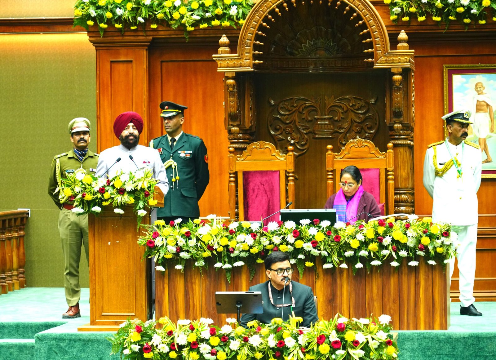 भराड़ीसैंण (गैरसैंण) में विधानसभा में अभिभाषण प्रस्तुत करते हुए राज्यपाल लेफ्टिनेंट जनरल गुरमीत सिंह (से नि)।