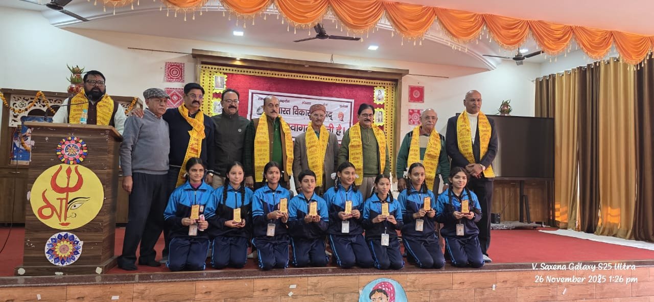 हरिद्वार। भारत विकास परिषद् शाखा भेल हरिद्वार द्वारा “गुरु वंदन – छात्र अभिनंदन” एवं “भारत को जानो प्रश्न मंच” कार्यक्रमों का भव्य आयोजन सरस्वती विद्या मंदिर इन्टर कॉलेज, मायापुर, हरिद्वार के भव्य सभागार में बड़े उत्साह के साथ सम्पन्न हुआ। गुरुजनों के सम्मान और विद्यार्थियों के उत्साह एवं ऊर्जा से भरा यह कार्यक्रम बहुत ही प्रेरणादायक रहा। सभी प्रतिभागी छात्रों एवं सम्मानित शिक्षकों को हार्दिक बधाई एवं उज्ज्वल भविष्य की शुभकामनाएं। कार्यक्रम का प्रारंभ अतिथियों द्वारा मां भारती एवं विवेकानंद जी की मूर्तियों पर पुष्प अर्पित कर एवं दीप प्रज्वलित कर किया गया। तत्पश्चात सरस्वती विद्या मंदिर के बालक बालिकाओं ने वंदे मातरम गीत की एवं सरस्वती वंदना की संगीतमय प्रस्तुति की। मुख्य अतिथि परिषद के प्रांतीय उपाध्यक्ष श्री ललित पांडे जी एवं विशिष्ट अतिथि प्रांतीय संगठन सचिव श्री निखिल वर्मा जी थे जिनकी गरिमामई उपस्थिति ने कार्यक्रम की शोभा बढ़ाई।