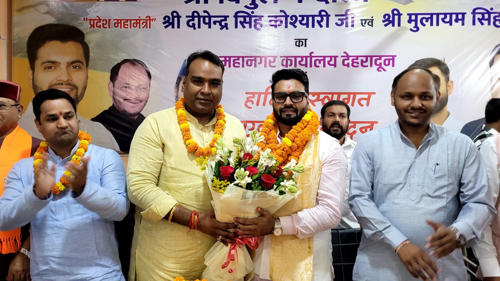 आज भारतीय जनता पार्टी महानगर देहरादून के अध्यक्ष श्री सिद्धार्थ उमेश अग्रवाल जी की अध्यक्षता में भारतीय जनता युवा मोर्चा (भाजयुमो) के प्रदेश अध्यक्ष विपुल मैंदोली, प्रदेश महामंत्री मुलायम सिंह रावत और दीप कोश्यारी जी (दीपेंद्र) का भारतीय जनता पार्टी महानगर कार्यालय में भव्य स्वागत एवं अभिनंदन किया गया। इस अवसर पर पार्टी कार्यकर्ताओं में जोश और उत्साह का वातावरण देखने को मिला। पूरे कार्यालय परिसर को भगवा पताकाओं, पुष्पमालाओं और बैनरों से सजाया गया था।