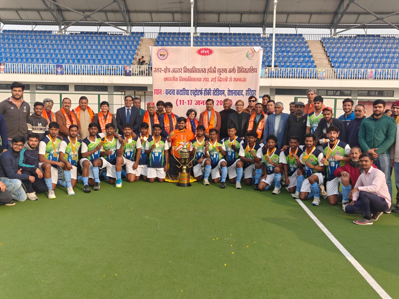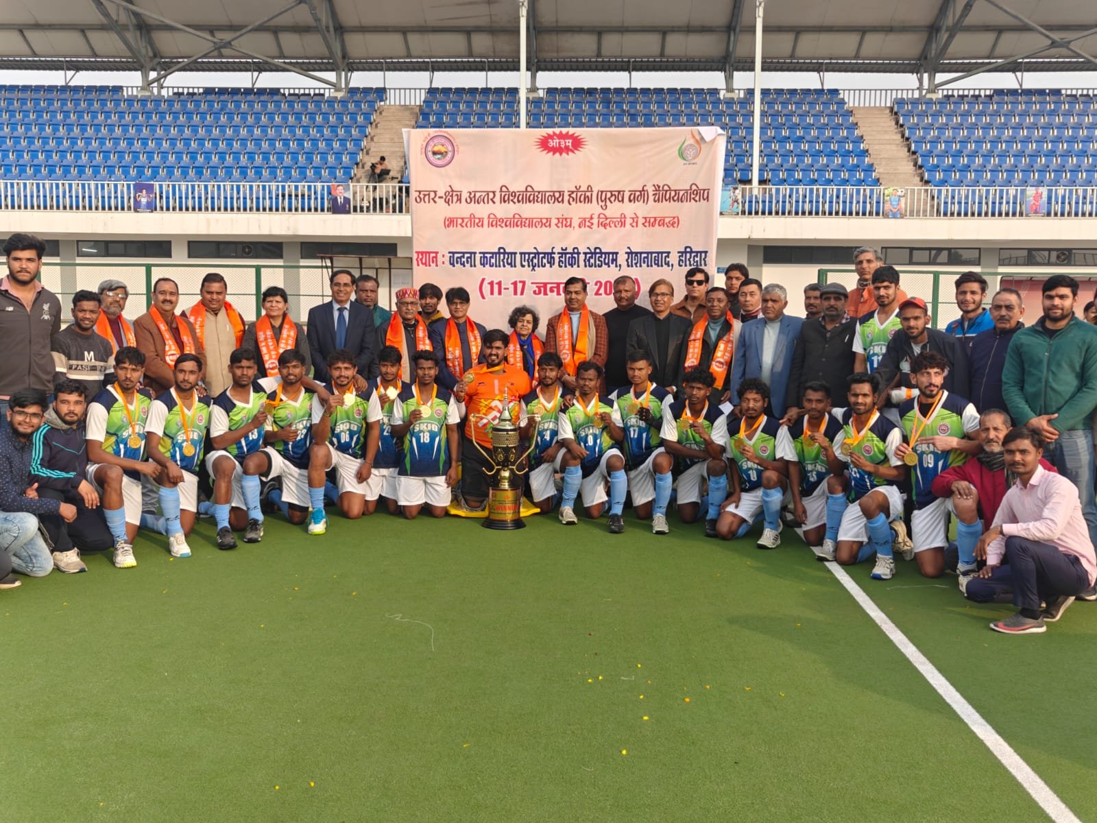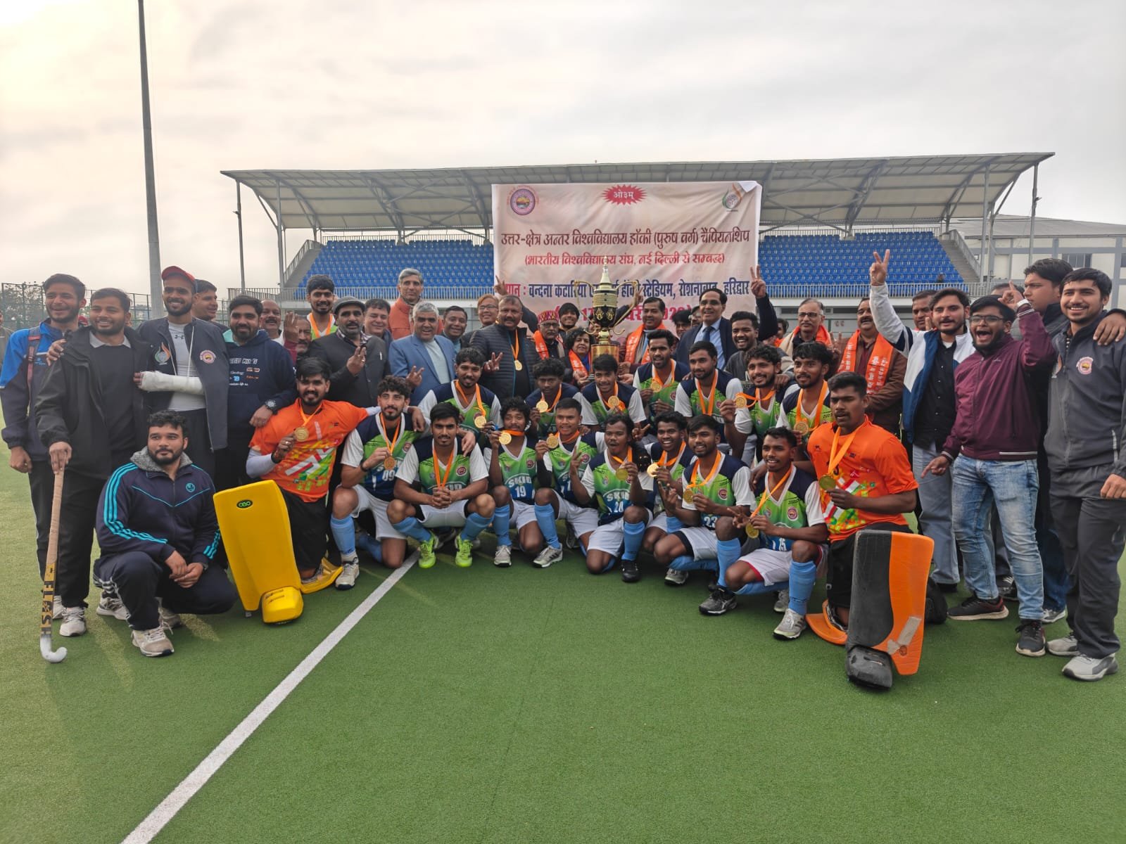 हरिद्वार। वंदना कटारियॉ स्टेडियम परिसर मे सात दिनों से चल रही उत्तर-क्षेत्र अन्तर वि0वि0 हॉकी चैम्पियनशिप मे गुरूकुल कंगडी समवि0वि0 ने एल0पी0यू0, फग्वाडा को 5-2 से परास्त करके चैम्पियनशिप ट्राफी पर कब्जा किया। उपविजेता एल0पी0यू0, फग्वाडा तथा तीसरे स्थान पर कुरूक्षेत्र वि0वि0, कुरूक्षेत्र ने प्राप्त किया। शनिवार को अपराहन 2ः00 बजे गुरूकुल कांगडी तथा एल0पी0यू0, फग्वाडा के बीच आरम्भ हुआ जिसमे गुरूकुल कांगडी समवि0वि0, ने एल0पी0यू0 को 5-2 से परास्त किया। तीसरे स्थान के लिए प्रातः 11ः00 बजे कुरूक्षेत्र वि0वि0, कुरूक्षेत्र तथा पंजाबी वि0वि0, पटियाला के बीच हुऐ मुकाबले मे कुरूक्षेत्र ने पटियाला को 2-1 से परास्त किया। मुख्य अतिथि एवं रानीपुर विधायक आदेश चौहान ने विजेता तथा उपविजेता टीमों के खिलाडियों को मेडल तथा ट्राफी प्रदान की। उन्होने कहॉ कि खिलाडी को खेलों मे उन्नति के लिए अनुशासित एवं तकनीकि सूझ-बूझ पर ज्यादा ध्यान देने की आवश्यकता है। उन्होने खिलाडियों के खेल की सराहना करते हुये वंदना कटारियॉ के जीवन के प्रेरक संस्मरण भी साझा किये। समवि0वि0 की कुलपति प्रो0 प्रतिभा मेहता लूथरा ने कहॉ कि गुरूकुल कांगडी सदैव खिलाडियों एवं देश की उन्नति को समर्पित संस्था है। खेल यहां के पठन-पाठन तथा दिनचर्या का प्रमुख हिस्सा है। कार्यक्रम का संचालन करते हुये आयोजन अध्यक्ष डॉ0 शिवकुमार चौहान ने हॉकी के पुरातन खिलाडियों तथा संस्थापक स्वामी श्रद्वानंद जी के 100-वे बलिदान वर्ष पर कृतज्ञता ज्ञापित करके आयोजन को समर्पित किया। अतिथियो का स्वागत सचिव, क्रीडा परिषद डॉ0 अजय मलिक तथा धन्यवाद ज्ञापन कुलसचिव प्रो0 नवनीत द्वारा किया गया। इस अवसर पर वित्ताधिकारी प्रो0 वी0के0 सिंह, परीक्षा नियंत्रक प्रो0 एल0पी0 पुरोहित, शिक्षक संघ के अध्यक्ष प्रो0 एल0पी0पुरोहित, डॉ0 बबलू वेदालंकार, डॉ0देवेन्द्र कुमार सिंह, प्रो0 विवेक गोयल, डॉ0 रविन्द्र कुमार, डॉ0 बलवन्त सिंह, पार्षद नागेन्द्र सिंह राणा, डॉ0 बिन्दु मलिक, आयोजन सचिव डॉ0 कपिल मिश्रा, डॉ0 अनुज कुमार, डॉ0 प्रणवीर सिंह, सुनील कुमार, गौरवदीप सिंह भिण्डर, चरणजीत सिंह, वेदप्रकाश थापा, पवन राजपूत, कुलदीप रतूडी, रमेश चन्द्र, गुरप्रीत सिंह आदि उपस्थित रहे। मैचों का संचालन, विपुल कुमार सिंह, मलकियत सिंह, मौ0 जावेद अख्तर, फैजान अहमद, अमित गुप्ता, रूपेन्द्र कुमार रजत कुमार के निर्देशन मे सम्पन्न हुआ। धन्यवाद ज्ञापन कुलसचिव प्रो0 नवनीत द्वारा किया। इस अवसर पर कोच गुरूकुल टीम दुष्यन्त राणा तथा मैनेजर अश्वनी कुमार के सहयोग की अतिथियों एवं समवि0वि0 प्रशासन ने सराहना की।