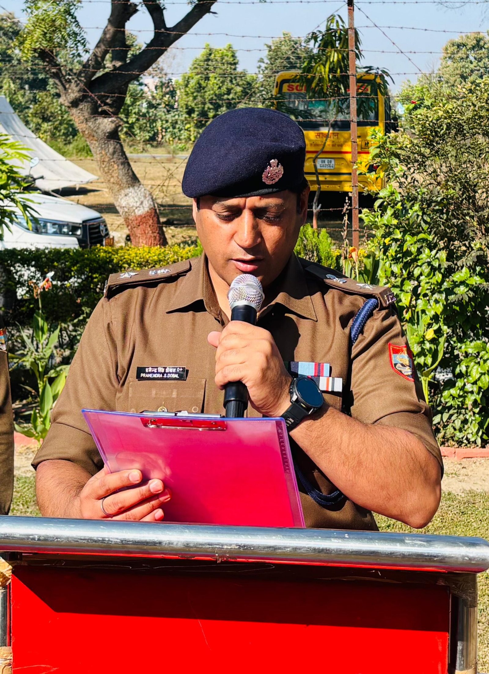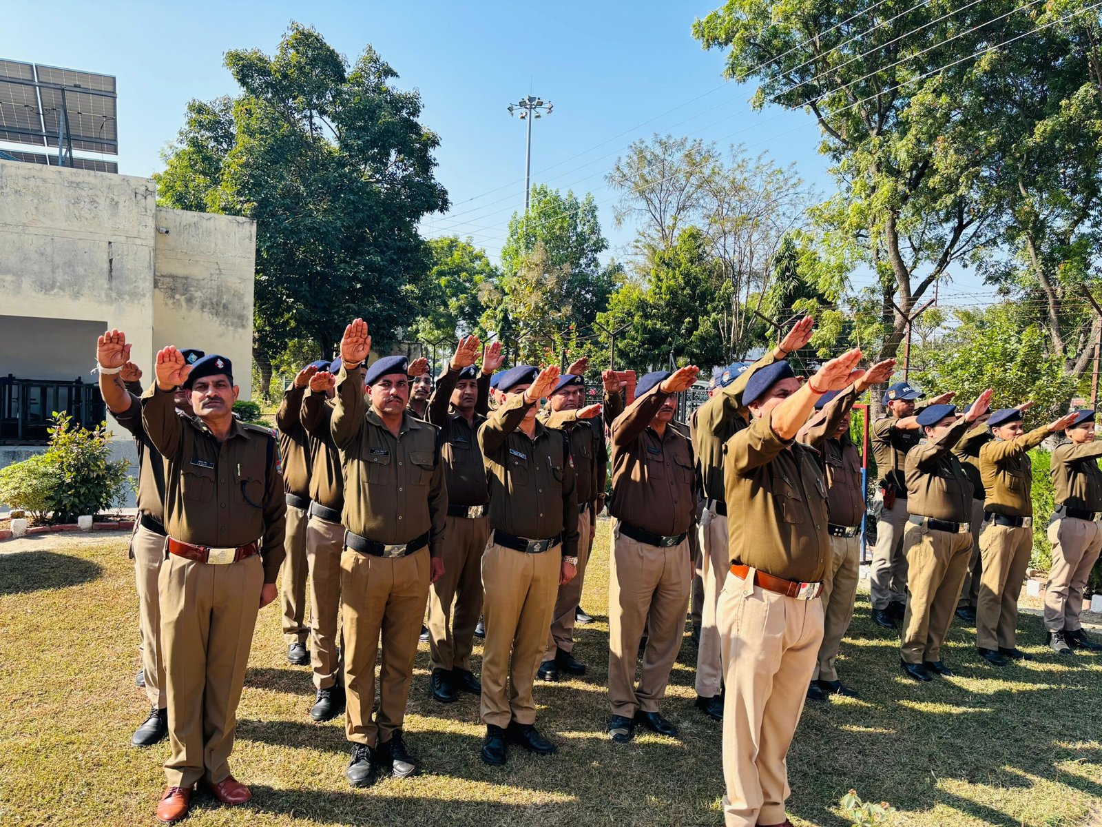 आज दिनांक 26 नवंबर 2025 को संविधान दिवस के अवसर पर पुलिस लाइन स्थित क्वार्टर गार्ड में शपथ कार्यक्रम आयोजित किया गया। इस अवसर पर एसएसपी प्रमेंद्र सिंह डोबाल द्वारा लोकतंत्र एवं आमजन के लिए भारतीय संविधान के महत्व को रेखांकित करते हुए मौजूद सभी जवानों एवं पीएमएस के छात्र-छात्राओं को संविधान के प्रति निष्ठावान रहने की शपथ दिलाई गई।