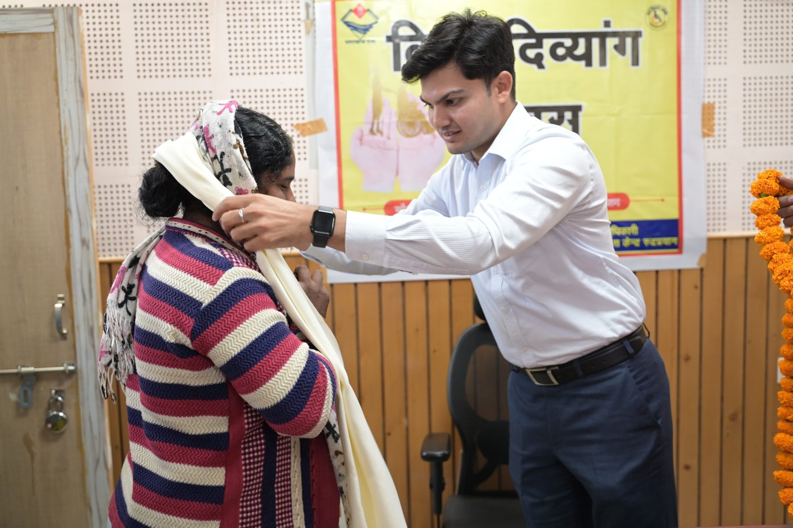 कार्यक्रम में जिलाधिकारी ने राज्य स्तरीय दक्ष दिव्यांग कर्मचारी एवं ग्राम पंचायत विकास अधिकारी महेंद्र प्रसाद को मान पत्र एवं नकद पुरस्कार प्रदान कर सम्मानित किया। महेंद्र प्रसाद द्वारा वर्षों से किए जा रहे उत्कृष्ट कार्यों एवं समर्पित सेवा की जिलाधिकारी ने सराहना की। यह सम्मान न केवल उनके कार्य की प्रशंसा है,