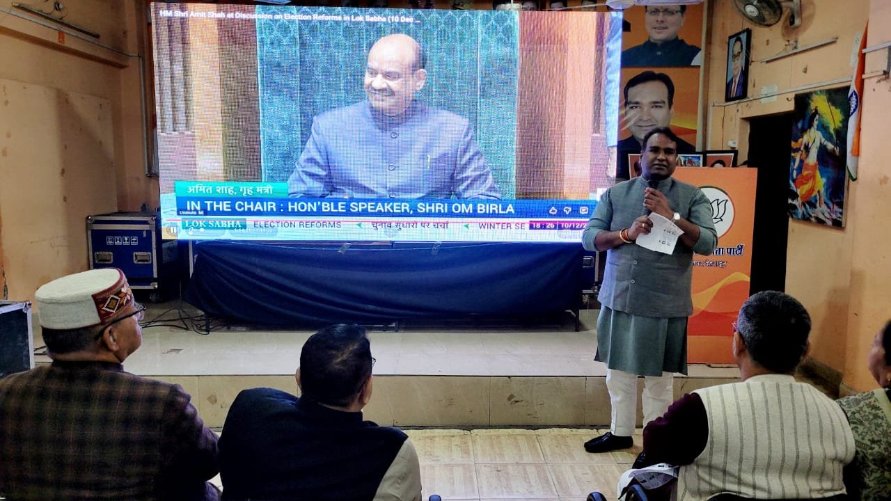 देश के माननीय गृह मंत्री आदरणीय अमित शाह जी के द्वारा सदन में हुई चुनाव सुधार पर चर्चा का वीडियो क्लिप के माध्यम से भाजपा महानगर कार्यालय पर महानगर की अध्यक्ष सिद्धार्थ उमेश अग्रवाल जी के नेतृत्व में सैकड़ों कार्यकर्ता ने माननीय गृहमंत्री अमित शाह जी के उद्बोधन को सुना।
