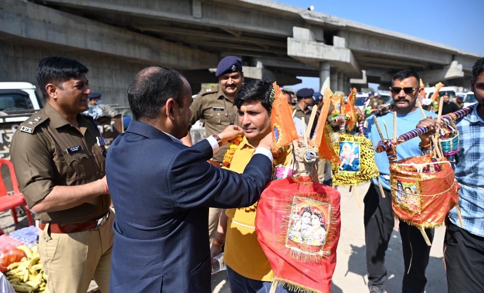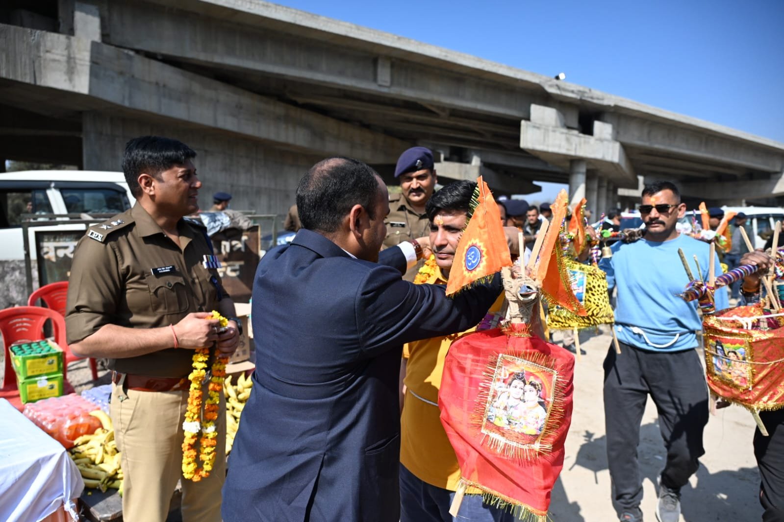 इस दौरान जिलाधिकारी एवं वरिष्ठ पुलिस अधीक्षक ने शारदीय कांवड़ यात्रा पर आए शिव भक्तों का फूल मालाओं से स्वागत किया गया तथा अतिथि देवो भव की परंपरा से फल एवं जल पान वितरित किया गया।