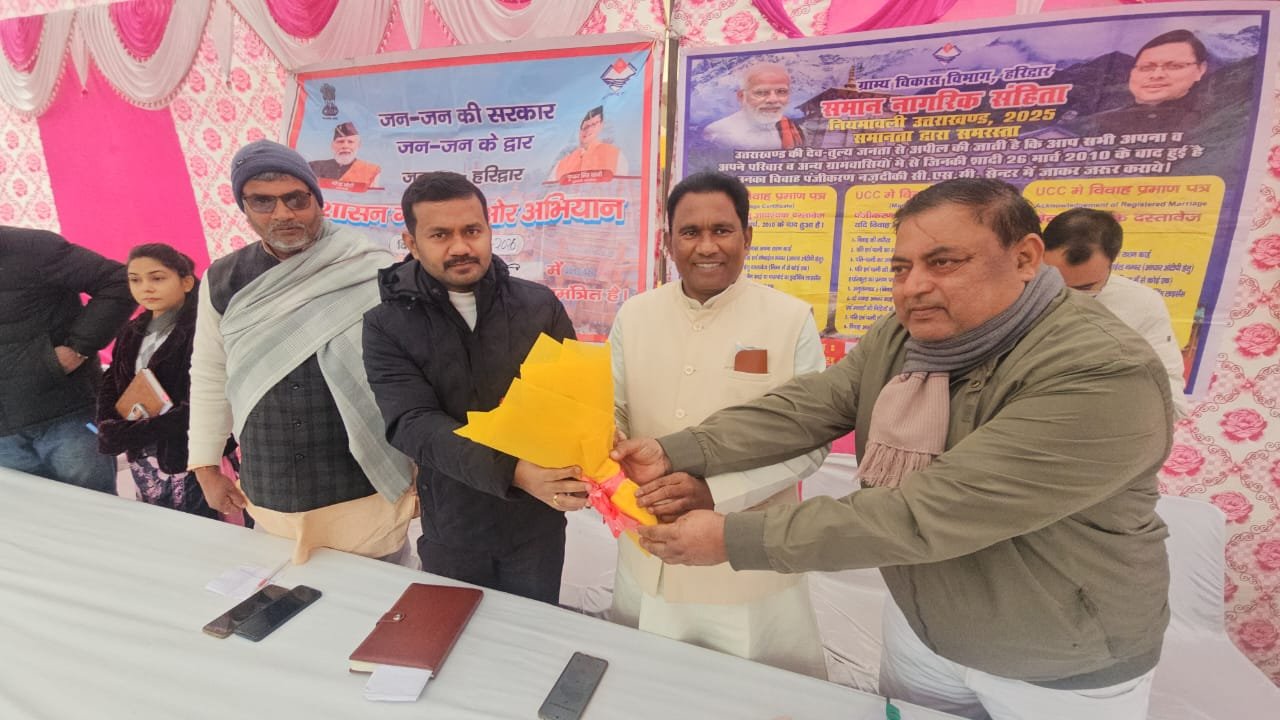 *हरिद्वार । उप जिलाधिकारी जितेंद्र कुमार की अध्यक्षता में विकास खंड बहादराबाद के न्याय पंचायत शाहपुर शीतला के राजकीय प्राथमिक विधालय में जन-जन की सरकार, जन-जन के द्वार शिविर में विभिन्न विभागों के माध्यम से संचालित जन कल्याणकारी योजनों से 1109 क्षेत्रवासियों को लाभान्वित किया गया तथा विभिन्न विभागों के माध्यम से 21 लोगों को विभिन्न प्रमाण पत्र निर्गत किए गए,इस शिविर में 3485 लोगों द्वारा किया गया प्रतिभाग ।