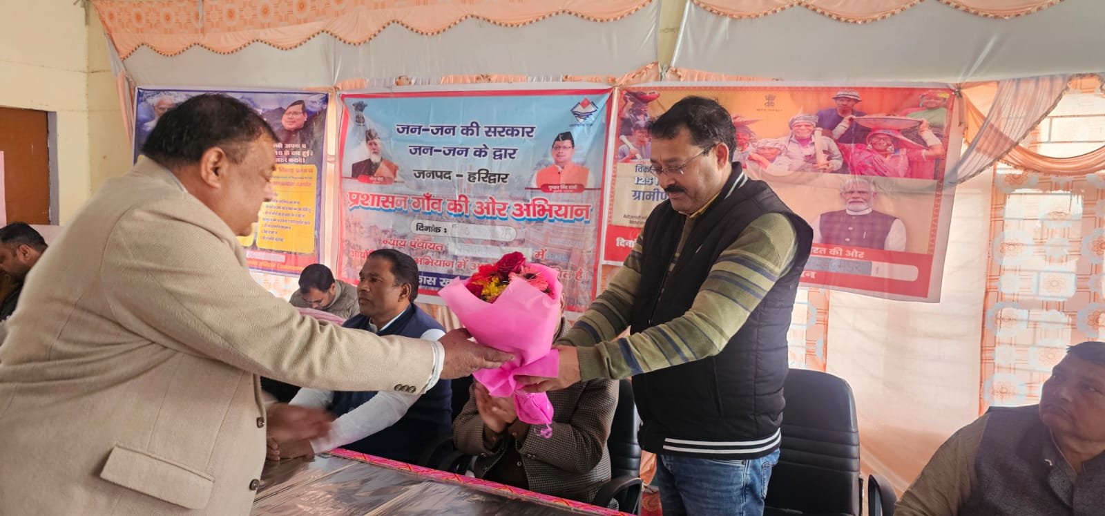 *हरिद्वार। मुख्य विकास अधिकारी ललित नारायण मिश्रा की अध्यक्षता में विकास खंड नारसन के न्याय पंचायत मखदूमपुर राजकीय इंटर कॉलेज मखदूमपुर में जन-जन की सरकार जन-जन के द्वार अभियान के अंतर्गत बहुउद्देशीय शिविर आयोजन किया गया। बहुउद्देशीय शिविर में 189 लोगों को विभिन्न विभागों से प्रमाण पत्र निर्गत किए गए तथा 313 लोगों विभिन्न विभागों की संचालित जन कल्याणकारी योजनाओं से लाभान्वित किया गया। इस शिविर में 1049 लोगों ने प्रतिभाग किया।