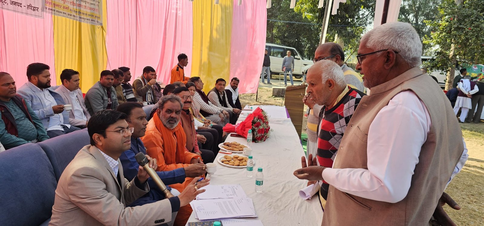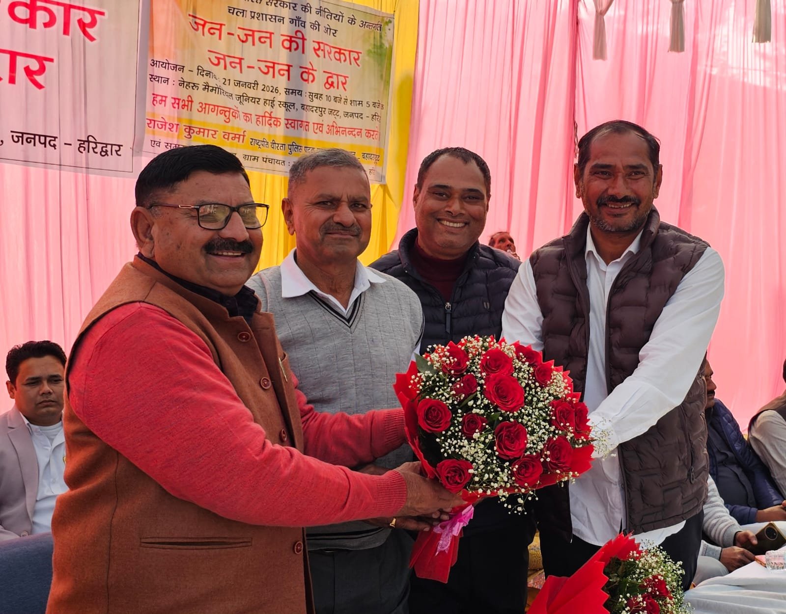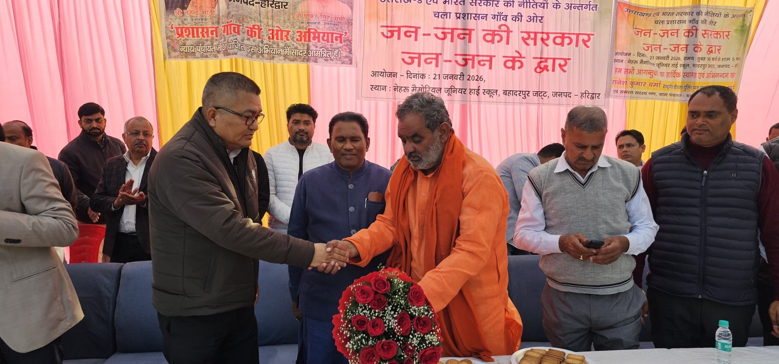 *हरिद्वार। अपर जिलाधिकारी (वित्त एवं राजस्व) दीपेंद्र सिंह नेगी की अध्यक्षता में विकासखंड बहादराबाद के न्याय पंचायत बहादुरपुर जट नेहरू मेमोरियल जूनियर हाई स्कूल में जन-जन की सरकार, जन-जन के द्वार शिविर में विभिन्न विभागों के माध्यम से संचालित जन कल्याणकारी योजनों से 768 क्षेत्रवासियों को लाभान्वित किया गया तथा विभिन्न विभागों के माध्यम से 187 लोगों को विभिन्न प्रमाण पत्र निर्गत किए गए,इस शिविर में 2176 लोगों द्वारा किया गया प्रतिभाग ।