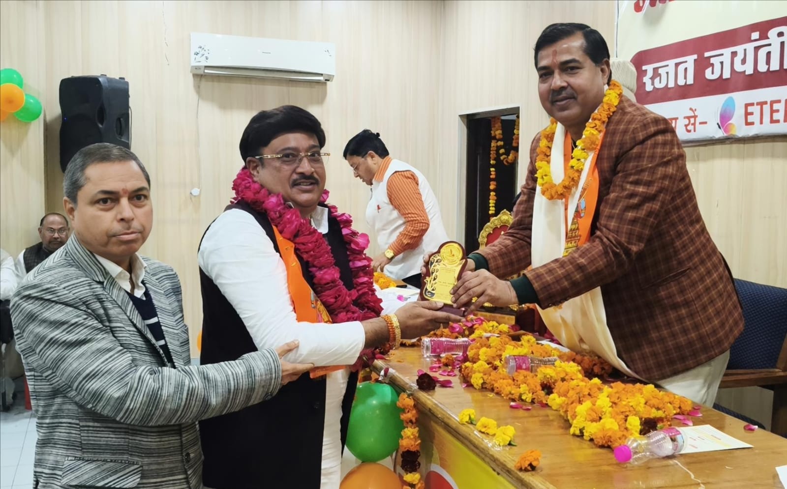 समारोह का शुभारंभ दीप प्रज्वलन एवं मां शारदा की स्तुति के साथ किया गया। कार्यक्रम की अध्यक्षता सुप्रसिद्ध कथावाचक रविदेव शास्त्री ने की। मुख्य अतिथि के रूप में रानीपुर विधायक आदेश चौहान तथा विशिष्ट अतिथि के रूप में उत्तराखंड श्रमजीवी पत्रकार यूनियन के प्रदेश अध्यक्ष अरुण शर्मा उपस्थित रहे। कार्यक्रम का संचालन रजनीकांत शुक्ला ने किया। जिलाध्यक्ष संजय आर्य ने यूनियन के गठन से लेकर वर्तमान तक की यात्रा पर प्रकाश डालते हुए कहा कि उत्तराखंड श्रमजीवी पत्रकार यूनियन ने सदैव जमीनी स्तर पर काम करने वाले पत्रकारों की आवाज़ को बुलंद किया है। कार्यक्रम संयोजक डा.हिमांशु द्विवेदी ने सभी अतिथियों, पत्रकार साथियों और गणमान्य नागरिकों का पटका पहनाकर स्वागत किया। विशिष्ट अतिथि प्रदेश अध्यक्ष अरुण शर्मा ने यूनियन के 25 वर्षों के संघर्ष, उपलब्धियों और पत्रकार हितों के लिए किए गए आंदोलनों की विस्तार से जानकारी दी। उन्होंने कहा कि आज के दौर में पत्रकारिता एक बड़ी जिम्मेदारी है। जिसमें सत्य, निष्पक्षता और सामाजिक प्रतिबद्धता सबसे महत्वपूर्ण हैं। उन्होंने पत्रकारों से अपील की कि वे मानकों और मर्यादाओं का पालन करते हुए निर्भीक और ईमानदार पत्रकारिता करें। उन्होंने बताया कि यूनियन लगातार पत्रकारों के अधिकारों, सुरक्षा और सम्मान के लिए संघर्षरत है। मुख्य अतिथि विधायक आदेश चौहान ने समारोह को संबोधित करते हुए कहा कि पत्रकार लोकतंत्र का चौथा स्तंभ हैं और समाज को दिशा देने में उनकी भूमिका अत्यंत महत्वपूर्ण है। विधायक आदेश चौहान ने पूर्व प्रधानमंत्री अटल बिहारी वाजपेयी के योगदान को स्मरण करते हुए कहा कि उनके नेतृत्व में उत्तराखंड राज्य का गठन संभव हो पाया। साथ ही उन्होंने मुख्यमंत्री पुष्कर सिंह धामी के नेतृत्व में राज्य में हो रहे विकास कार्यों की भी सराहना की। मेयर किरण जैसल ने समारोह में उपस्थित पत्रकारों को रजत जयंती की शुभकामनाएं देते हुए कहा कि पत्रकार समाज का आईना हैं और उनकी लेखनी समाज को जागरूक करने का कार्य करती है। पूर्व मुख्यमंत्री एवं राज्यपाल भगत सिंह कोश्यारी एवं प्रसिद्ध आध्यात्मिक गुरु शंकर करौरी महादेव ने ऑडियो संदेश के माध्यम से यूनियन को 25 वर्ष पूर्ण होने पर शुभकामनाएं प्रेषित कीं और पत्रकारों की भूमिका की सराहना की। प्रेस क्लब अध्यक्ष धर्मेंद्र चौधरी ने सभी अतिथियों, पत्रकारों एवं आगंतुकों का आभार व्यक्त करते हुए कहा कि यह समारोह पत्रकारिता के मूल्यों को सशक्त करने वाला रहा। कार्यक्रम की अध्यक्षता कर रहे स्वामी रविदेव शास्त्री ने कहा कि बदलते समय में पत्रकारिता के सामने नई चुनौतियां हैं। लेकिन श्रमजीवी पत्रकार यूनियन ने सदैव सामाजिक सरोकारो