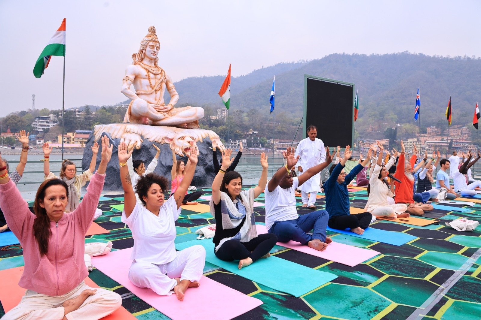 ऋषिकेश। विश्व भर से आए योग साधक परमार्थ निकेतन में आयोजित अन्तर्राष्ट्रीय योग महोत्सव के अंतिम दिवस पर माँ गंगा के पावन तट पर एकत्रित हुए। दिन की शुरुआत एक शक्तिशाली सामूहिक योग साधना से हुई और समापन पवित्र परमार्थ गंगा आरती तथा संगीत, नृत्य और आनंदमय उत्सव से हुआ। अन्तर्राष्ट्रीय योग महोत्सव, परमार्थ निकेतन, 2026 कि सात दिनों की दिव्य यात्रा एक योग उत्सव के साथ मानवता के जागरण की एक वैश्विक साधना है। यहाँ भारत की आत्मा, उसकी संस्कृति, योग और अध्यात्म का वास्तविक स्वरूप विश्व के सामने प्रकट हो रहा है।एक सप्ताह से चल रही परिवर्तनकारी साधनाओं, ज्ञानवर्धक सत्रों और आध्यात्मिक उत्सवों के पश्चात प्रतिभागी पुनः माँ गंगा के पावन तट पर एकत्रित हुए, सभी ने मिलकर विश्व शान्ति के लिये प्रार्थनायें की और विश्व शान्ति यज्ञ में आहुतियाँ दी।अन्तर्राष्ट्रीय योग महोत्सव के अंतिम दिन की शुरुआत विशेष सामूहिक योग प्रोटोकॉल के साथ हुई। परमार्थ निकेतन के पवित्र घाट पर भगवान शिव की विशाल प्रतिमा के चरणों में विश्व के विभिन्न देशों से आए राजदूत, उच्चायुक्त, राजनायिक, योग साधक और योगाचार्यों ने योगाचार्य गंगा नन्दिनी जी के नेतृत्व व मार्गदर्शन में एक साथ योग का अभ्यास किया। इसमें इक्वाडोर के राजदूत एच.ई. फर्नांडो जेवियर बुचेली वर्गास, गुयाना के उच्चायुक्त एच.ई. धरमकुमार सीराज, बेलारूस के राजदूत एच.ई. मिखाइल कास्को, मंगोलिया के राजदूत एच.ई. गणबोल्ड दंबाजाव, योगाचार्य स्टुअर्ट गिलक्रिस्ट, दासा दास, स्टाइन सहित अनेक योगाचार्यों और साधकों ने सहभाग किया।यह आयोजन अन्तर्राष्ट्रीय योग दिवस 21 जून, की 100-दिवसीय उलटी गिनती के 98वें दिन के रूप में भी विशेष रहा। प्रतिभागियों ने प्रतिदिन के जीवन में योग को अपनाने तथा 21 दिसम्बर को मनाए जाने वाले अन्तर्राष्ट्रीय ध्यान दिवस के महत्व को साझा किया।परम पूज्य स्वामी चिदानन्द सरस्वती जी और पूज्य साध्वी भगवती सरस्वती जी के दिव्य नेतृत्व में, तथा भारत सरकार के आयुष मंत्रालय और पर्यटन मंत्रालय (इन्क्रेडिबल इंडिया) के सहयोग से आयोजित परमार्थ निकेतन का अन्तर्राष्ट्रीय योग महोत्सव विश्व के 80 से अधिक देशों से आए प्रतिभागियों के साथ एक सप्ताह तक योग, आध्यात्मिकता और जागरूक जीवनशैली के वैश्विक उत्सव के रूप में सम्पन्न हो रहा है।पूज्य स्वामी चिदानन्द सरस्वती जी ने कहा कि भारत केवल एक भूभाग नहीं, बल्कि एक चेतना है, वह चेतना जो “वसुधैव कुटुम्बकम्” व सर्वें भवन्तु सुखिनः का संदेश देती है। यहाँ योग मन, आत्मा और सम्पूर्ण मानवता को जोड़ने का सेतु है। माँ गंगा के पावन तट पर जब विभिन्न देशों, भाषाओं और संस्कृतियों के साधक एक साथ बैठकर ध्यान, प्रार्थना और साधना करते हैं, त