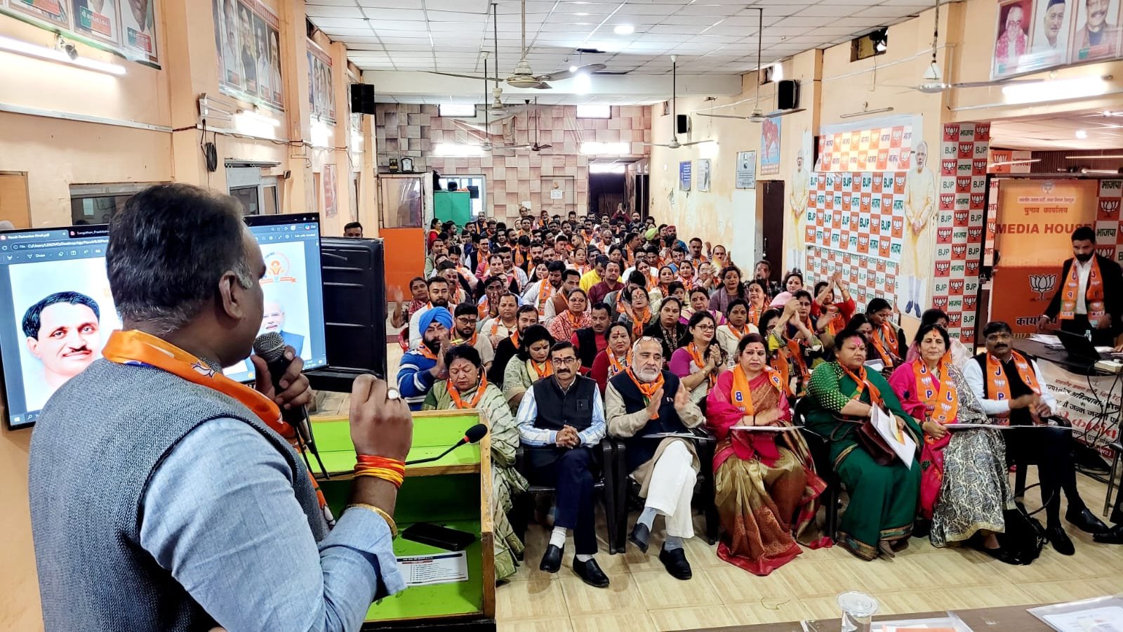 कार्यक्रम में महानगर के अध्यक्ष सिद्धार्थ में सलवार द्वारा सभी अतिथियों का स्वागत अभिनंदन किया गया कार्यक्रम में महानगर अध्यक्ष ने बताया कि पूरे देश भर में भारतीय जनता पार्टी के द्वारा महा प्रशिक्षण अभियान चलाया जा रहा है जिसके अंतर्गत बुथ स्तर से लेकर राष्ट्रीय स्तर तक परीक्षण कराए जाएंगे जिसमें पार्टी के कार्यकर्ताओं को सकारात्मक एवं विचारात्मक रूप से मजबूत किया जाएगा।