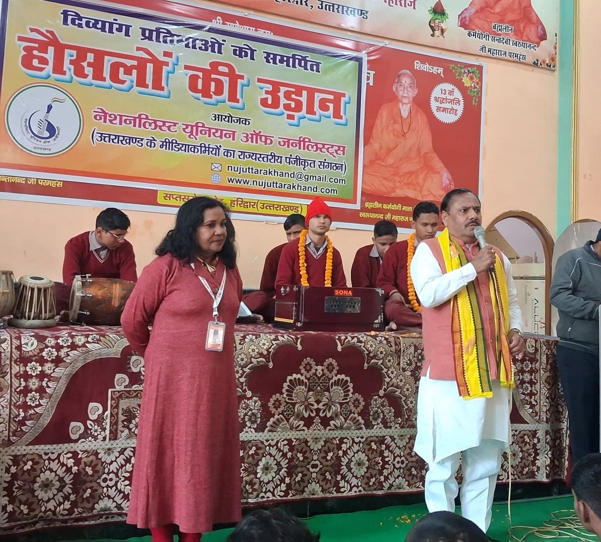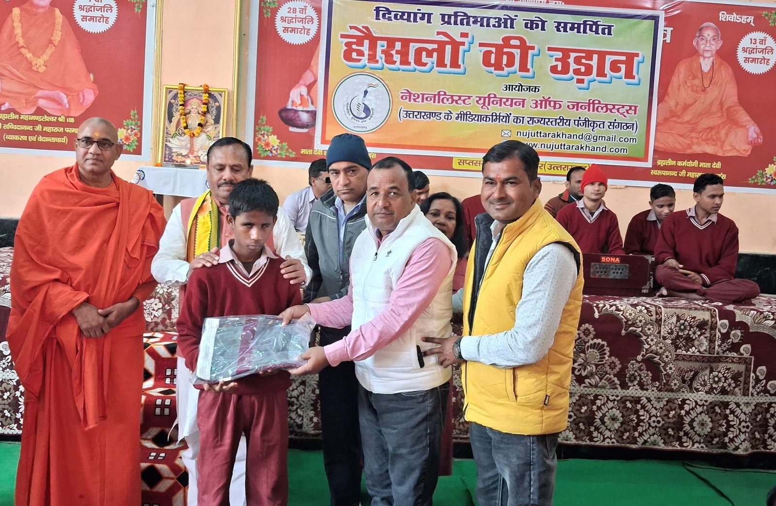 हरिद्वार। दिव्यांगों के सम्मान, अधिकारों, कल्याण तथा उन्हें आत्मनिर्भरता की प्रेरणा और प्रोत्साहन देने के उद्देश्य से दस वर्ष पूर्व, नेशनलिस्ट यूनियन ऑफ जर्नलिस्ट्स द्वारा आरंभ की गई मुहिम के तहत आज हरिद्वार में आयोजित ‘हौसलों की उड़ान’ कार्यक्रम में अनेक नेत्रहीन मेधावी विद्यार्थियों और अध्यापकों को सम्मानित किया गया।