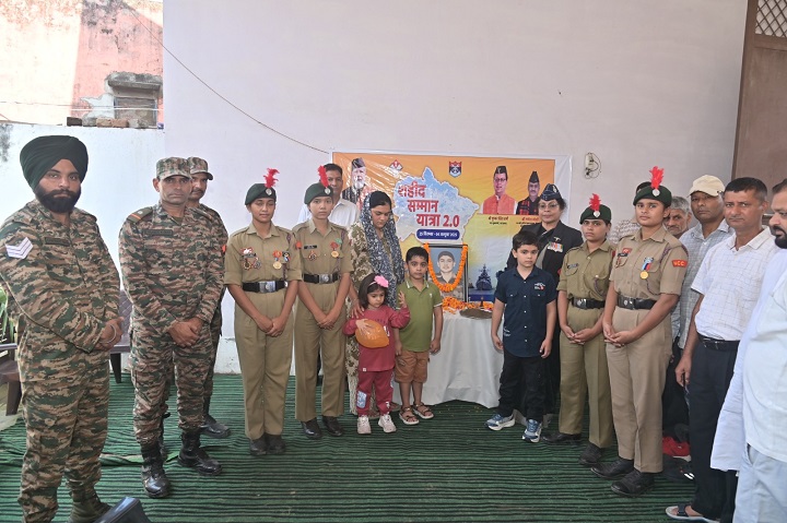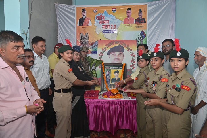 तत्पश्चात् शहीद सम्मान यात्रा जनपद के द्वितीय शहीद नायक प्रदीप कुमार, जो कि दिनांक 27 अक्टूबर 2023 को सिक्किम क्षेत्र में शहीद हुए थे, के ग्राम गदरजुडा के लिये प्रस्थान किया, जहां पर नारसन ब्लाक प्रमुख कविन्द्र चौधरी, ग्राम प्रधान गदरजुडा श्री भूपेन्द्र सिंह व समस्त ग्रामवासियों द्वारा स्वागत किया गया एवं शहीद सैनिक को श्रृद्धांजति के पश्चात शहीद सैनिक की पत्नी श्रीमती कविता चौधरी एंव परिवार के सदस्यों द्वारा घर-आंगन की मिटट्टी का ताम्र कलश जिला सैनिक कल्याण अधिकारी को हस्तगत किया गया।