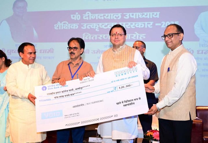 मुख्यमंत्री पुष्कर सिंह धामी ने गुरुवार को नानूरखेड़ा स्थित एससीईआरटी ऑडिटोरियम में आयोजित पंडित दीनदयाल उपाध्याय शैक्षिक उत्कृष्टता पुरस्कार समारोह में बोर्ड परीक्षाओं में शीर्ष 10 स्थान प्राप्त करने वाले हाईस्कूल एवं इंटरमीडिएट के 75 मेधावी छात्र-छात्राओं को पुरस्कृत किया। इस मौके पर बोर्ड परीक्षाओं में उत्कृष्ट परिणाम देने वाले विद्यालयों के तीन-तीन प्रधानाचार्यों के साथ ही श्रेष्ठ प्रदर्शन करने वाले शीर्ष 50-50 विद्यालयों के प्रधानाचार्यों को भी सम्मानित किया।