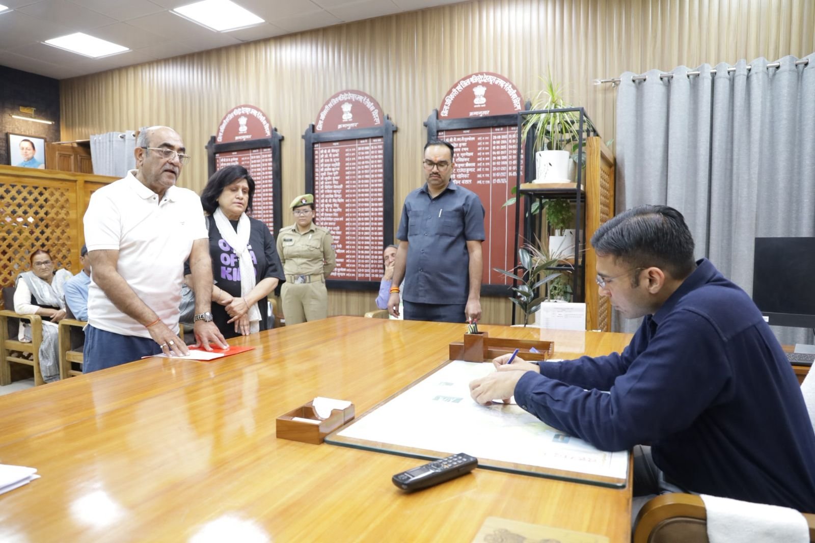 देहरादून।जिलाधिकारी कार्यालय कक्ष में आज फिर जला जनता दर्शन 50 से अधिक शिकायत प्राप्त जिलाधिकारी सविन बंसल प्रत्येक सोमवार को आयोजित होने वाले जनता दर्शन कार्यक्रम के दौरान शासन में आयोजित बैठक में प्रतिभाग करने के फलस्वरूप प्राप्त 212 शिकायतों में से लगभग 120 फरियादियों की शिकायत सुन पाए थे। जिलाधिकारी सविन बसंल ने आज अपने कार्यालय कक्ष में जनमानस की शिकायतें सुनी। जिलाधिकारी प्रत्येक दिन अपने कार्यालय कक्ष में आने वाले फरियादियों की शिकायतें सुनते है तथा सम्बन्धित विभागों से उनका समयबद्ध निस्तारण भी करवाते है। डीएम स्वयं शिकायतों की मॉनिटिरिंग करते है। डीएम अपने कार्यालय कक्ष में प्रतिदिन अपने कार्यों के साथ ही जनमानस की शिकायतें भी सुनते है प्रतिदिन फरियादियों की संख्या 40 से अधिक ही होती है।