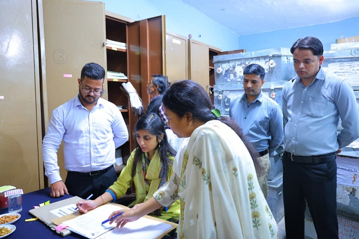 जिलाधिकारी स्वाति एस. भदौरिया ने मंगलवार को जिला मुख्यालय स्थित जिला कोषागार कार्यालय का अर्द्धवार्षिक निरीक्षण किया। इस दौरान उन्होंने डबल लॉक कक्ष में रखी बहुमूल्य वस्तुएं, जनरल स्टाम्प, कोर्ट फीस, रेवेन्यू स्टाम्प और नोटरी पंजिकाओं का अवलोकन किया।जिलाधिकारी ने प्रत्येक अनुभाग का बारीकी से निरीक्षण करते हुए कार्यप्रणाली की जानकारी ली।