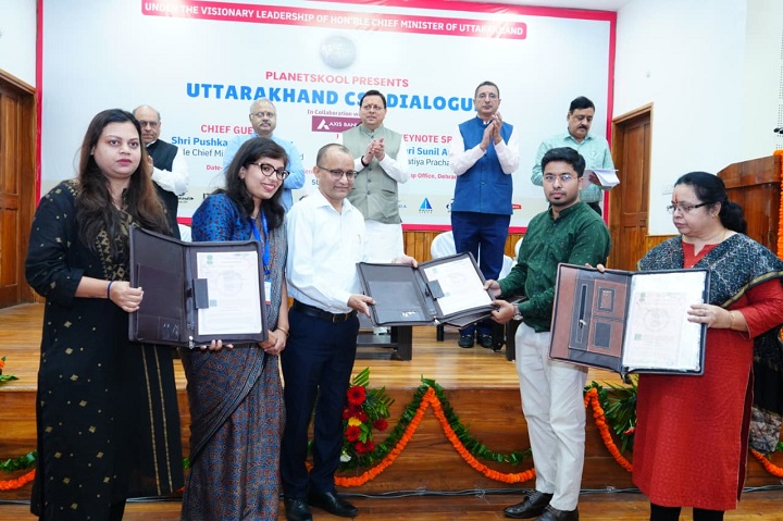 मुख्यमंत्री पुष्कर सिंह धामी ने बुधवार को मुख्यमंत्री आवास में उत्तराखण्ड सी.एस.आर. डायलॉग कार्यक्रम में प्रतिभाग किया। इस अवसर पर उन्होंने मुख्यमंत्री आदर्श ग्राम सारकोट के प्राथमिक विद्यालय में डिजिटल क्लासरूम का वर्चुअल शुभारंभ भी किया। कार्यक्रम में एक्सिस बैंक समूह के साथ राज्य के 24 विद्यालयों के डिजिटलाइजेशन के लिए तथा टोयटा के साथ पर्यावरण संरक्षण, शिक्षा, स्वास्थ्य एवं सामुदायिक सशक्तिकरण के क्षेत्र में सी.एस.आर. संचालित करने के लिए एमओयू किया गया।