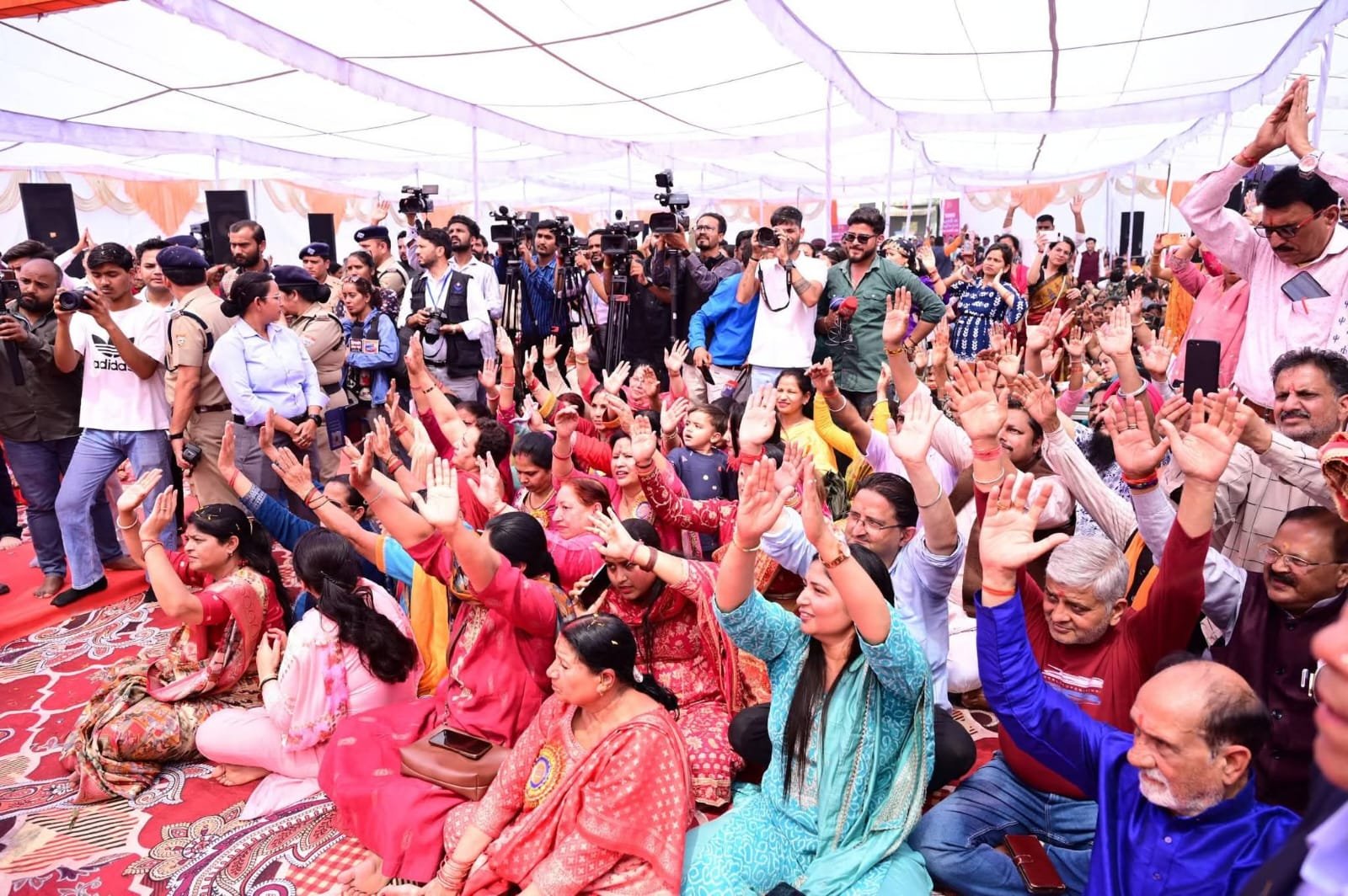 मैं आज पावन अवसर पर आप सभी को बधाई देता हूं की मां भगवती का आशीर्वाद आप पर सदा बना रहे नवरात्र का पर्व केवल आस्था का पर्व नहीं यह उपासना का महापर्व है ऐसे पर्व में जहां 11000 कन्याओं का समूह पूजन होना सुनिश्चित हो मेरे आना सौभाग्य की बात है आज इस कार्यक्रम में जो भी व्यक्ति जिस उद्देश्य के साथ आया है उसे पर आज मां भगवती की उसे पर कृपा है हम सभी लोग आज मां भगवती की कृपा से ही यहां उपस्थित हुए हैं।