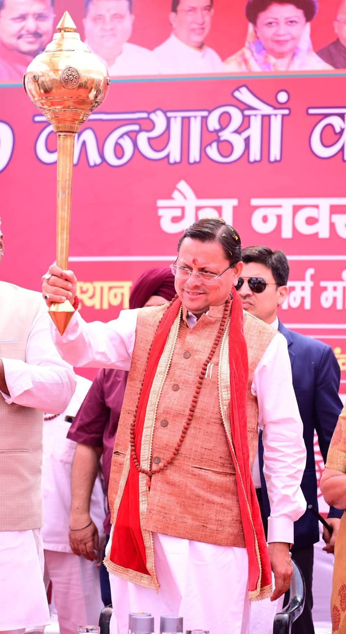 कार्यक्रम में प्रदेश के मुख्यमंत्री पुष्कर सिंह धामी जी ने महानगर के अध्यक्ष सिद्धार्थ उमेश अग्रवाल का धन्यवाद ज्ञपित करते हुए कहा कि मैं सौभाग्य शाली हूं कि मुझे आज इस पावन अवसर पर अपने निमंत्रण दिया आज चैत्र नवरात्रि का छठा दिन मां कात्यायनी देवी का दिन है हमारे जीवन में चैत्र नवरात्रि एवं शरदीय नवरात्रों का विशेष प्रभाव होता है हम चैत्र नवरात्रि के बाद गर्मी का समय प्रारंभ हो जाता है 9 दिन के व्रत रखने के बाद हमारा शरीर गर्मी मौसम के लिए पूरी तरह तैयार हो जाता है। आज हमारे सभी त्योहार प्राकृतिक रूप से प्रकृति से जुड़े हुए हैं हमारे पंचांग पूर्व समय में लिखे गए हैं जो आज के समय को भी निर्धारित किए हुए हैं पूर्व समय में ऋषि मुनियों के द्वारा जो लिखा गया था आज वह रचित हो रहा है।