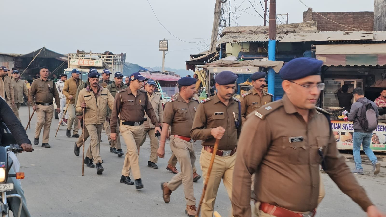 *SP देहात के नेतृत्व में निकाला गया फ्लैग मार्च—संदिग्धों पर कड़ी निगरानी जारी*