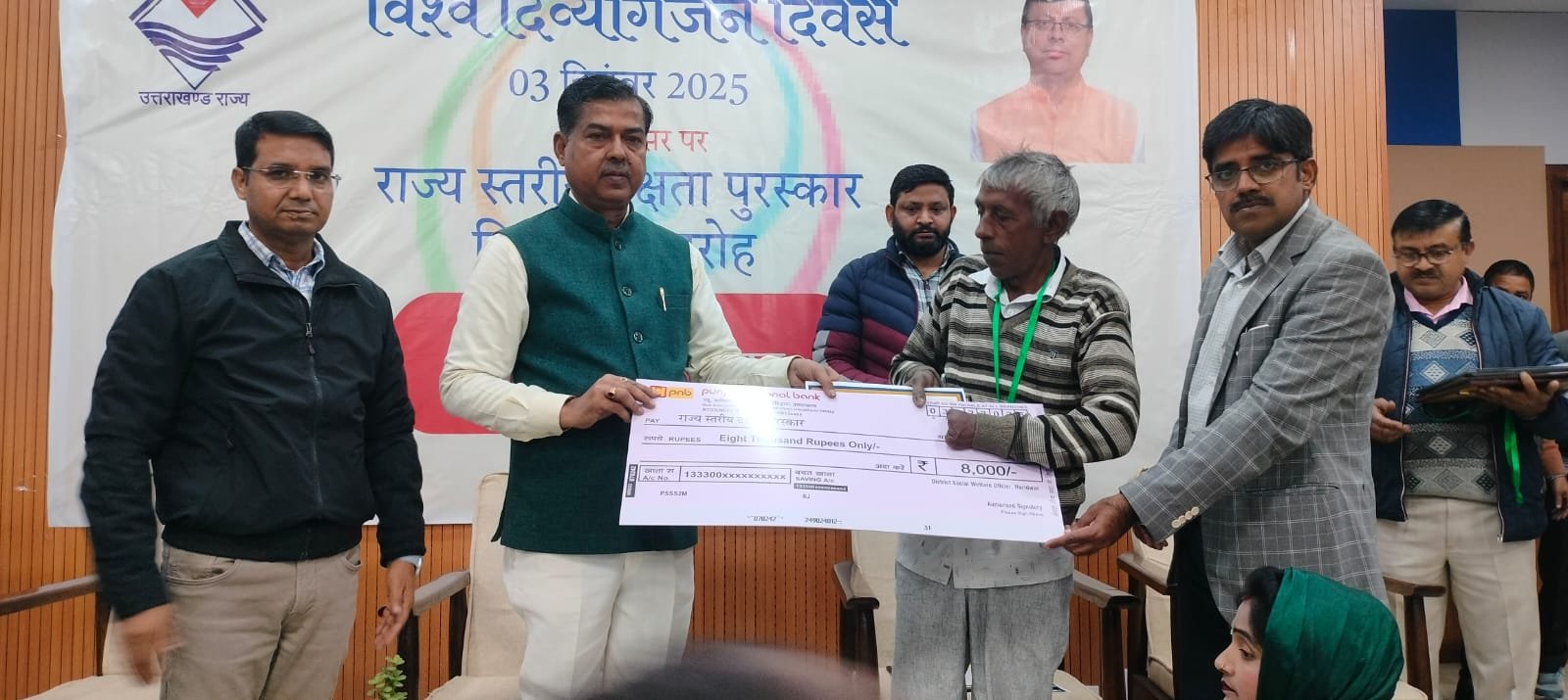 हरिद्वार।  विश्व दिव्यांगजन दिवस के अवसर पर समाज कल्याण विभाग के तत्वाधान में राज्य स्तरीय दक्षता पुरस्कार वितरण समारोह कार्यक्रम विकास भवन के ऑडिटोरियम में आयोजित किया गया जिसमें मुख्य अतिथि रानीपुर विधायक आदेश चौहान ने दीप प्रज्वलित कर कार्यक्रम का शुभारंभ किया।