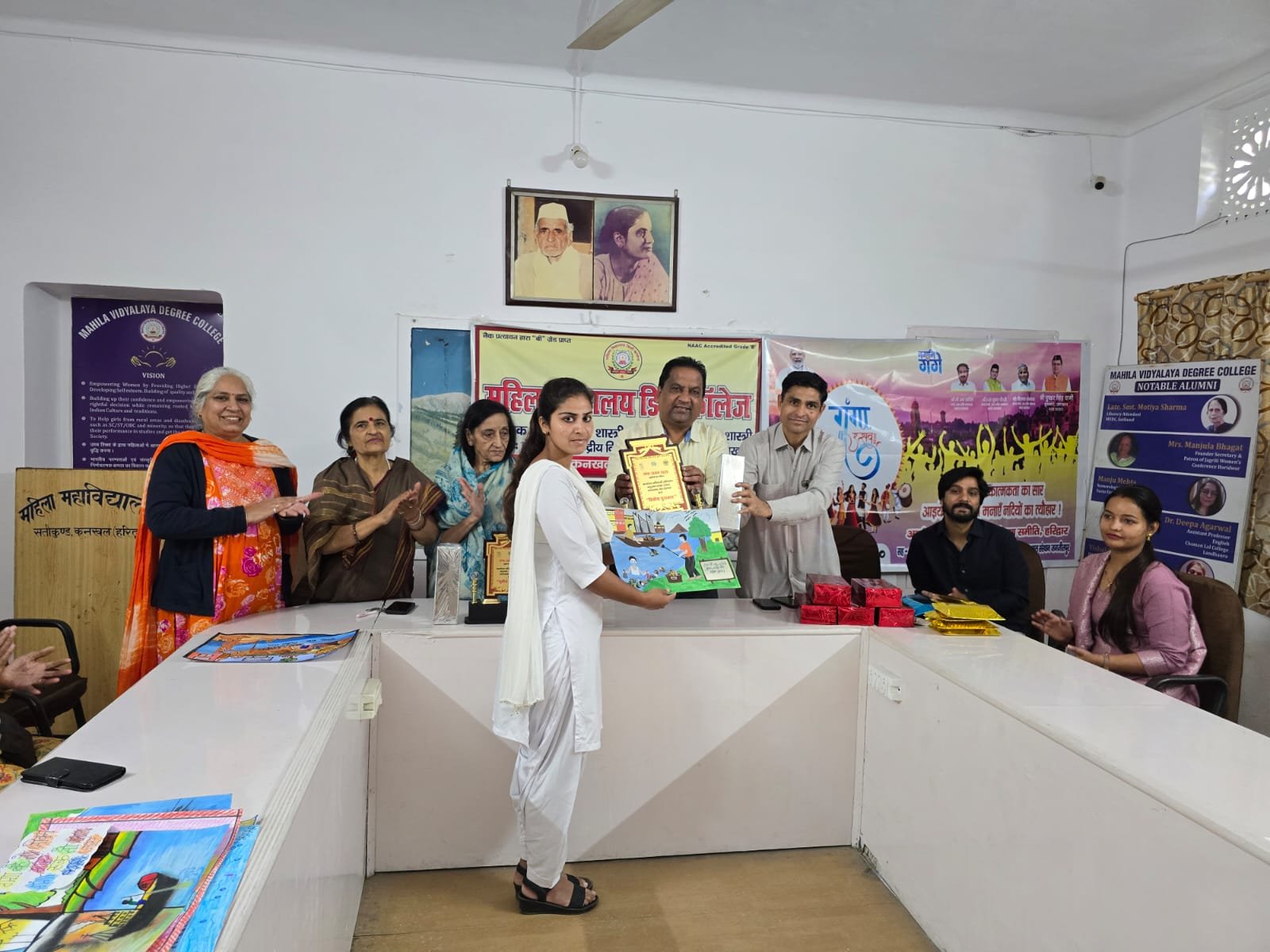 कॉलेज की सचिव डॉ वीणा शास्त्री ने गंगा को आधार बताते हुए छात्राओं को गंगा को स्वच्छ रखने के लिए प्रेरित किया। कॉलेज की प्राचार्या प्रो० गीता जोशी ने कहा कि गंगा हमारे देश की जीवनदायिनी नदी है. जो ना केवल धार्मिक आस्था का आधार है बल्कि देश की उन्नति व प्रगति के लिए भी महत्वपूर्ण है। संपूर्ण कार्यक्रम का संचालन IQAC समिति की समन्वयक प्रोफेसर प्रीति आत्रेय द्वारा सफलतापूर्वक किया गया। चित्रकला प्रतियोगिता में रिया बी०ए० प्रथम सेमेस्टर प्रथम पुरस्कार, सोनम बी०ए० तृतीय सेमेस्टर को दवितीय व अन्नू वर्मा बी०ए० पचम सेमेस्टर को तृतीय प्रथम पुरस्कार दिया गया।